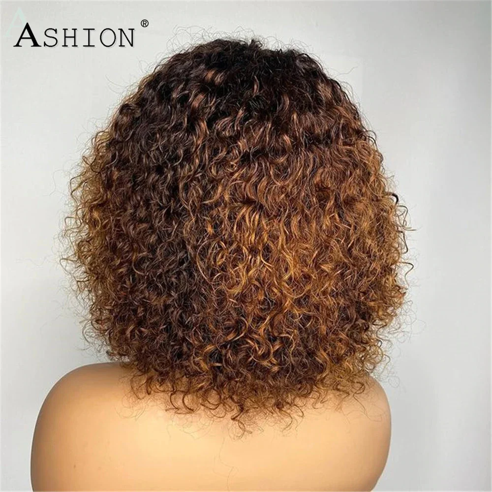 Короткие кудрявые парики из натуральных волос с челкой, медовый бло...