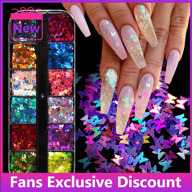Голографические Блестки для ногтей в виде бабочки, 1 набор, 12 цвет...