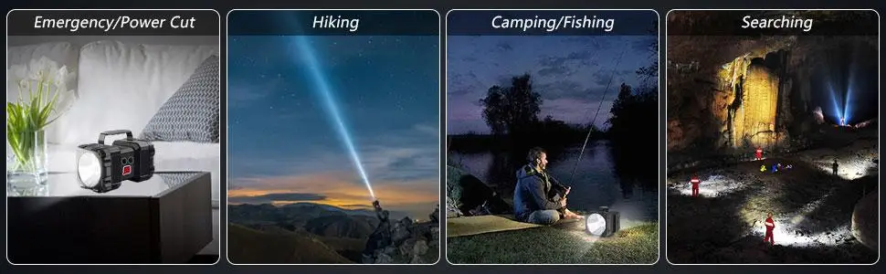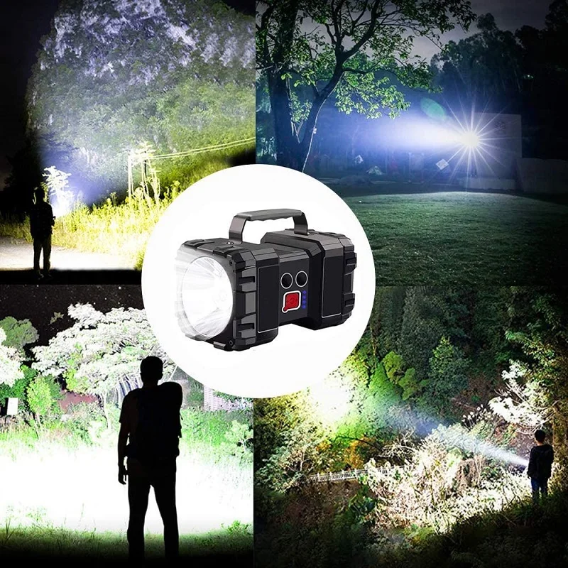 [Супер яркая вспышка]-светодиодный светильник с высокой яркостью освещения, с L2 + 45 Чип светодиодный светильник, широкий угол освещения. Яркость достигает 1200 люменов, освещая половину футбольного поля, а расстояние облучения может достигать 800 метров. Перезаряжаемый фонарь-прожектор, подходит для кемпинга, дорожного исследования и ночной работы.