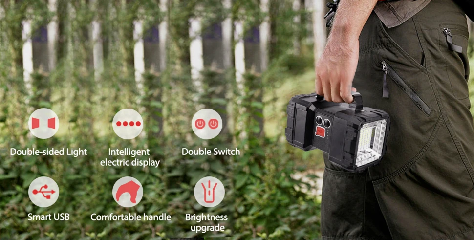 [3 + 4 режима светильник]-светодиодный фонарик с обеих сторон может легко переключаться между режимами низкой и средней яркости. Аварийный светильник, красный/синий режим вспышки SOS используется для помощи на открытом воздухе.