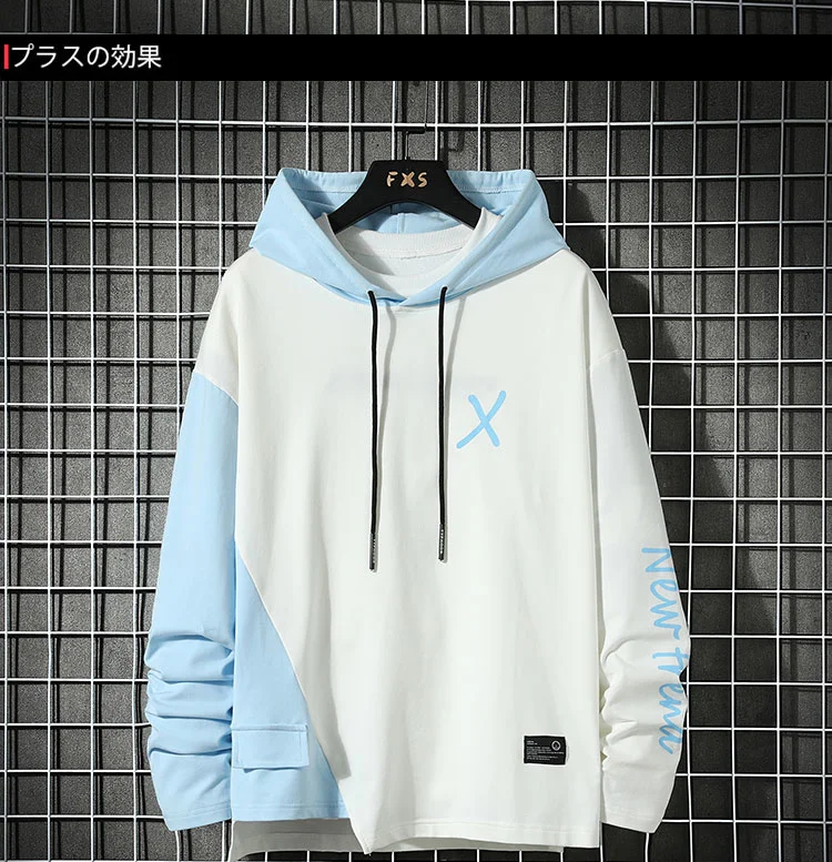 Мужская толстовка с капюшоном, в стиле хип-хоп, черного и синего цв...