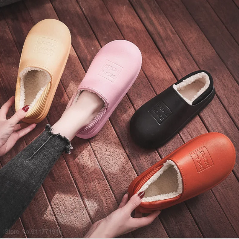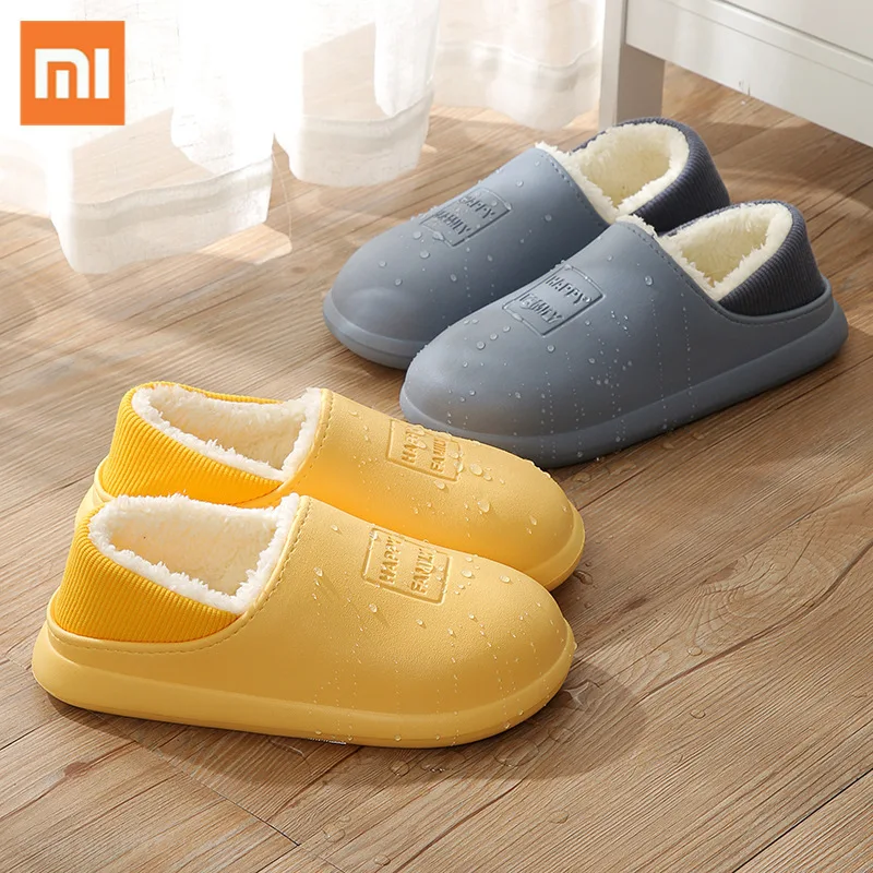 Зимние теплые плюшевые хлопковые тапочки Xiaomi 2021, женские нескользящие водонепроницаемые домашние сланцы, женские мягкие домашние тапочки на толстой подошве для пар