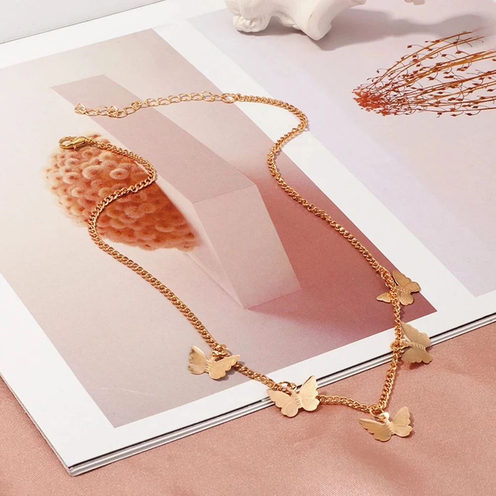 Ожерелье из сплава с золотой бабочкой женское ожерелье с подвеской-бабочкой многослойное ожерелье-чокер ювелирный подарок