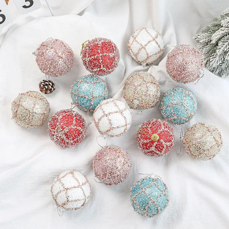 NameColorful Christmas Balls Xmas Tree Decoration Ornaments 8Cm Hanging Ball Home Navidad 2022 New Year Dress Up Supplies Decorative