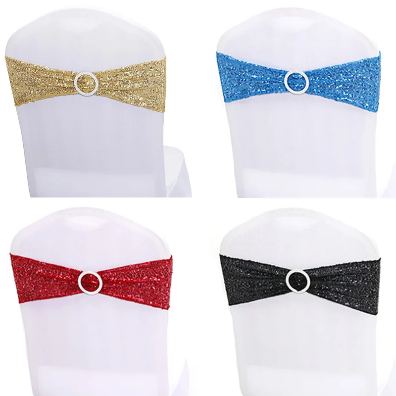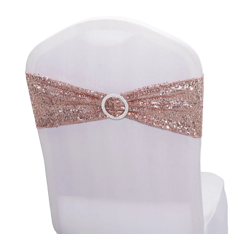 Высококачественное розовое золото серебро спандекс пайетки свадебный стул круглая пряжка стрейч повязка на стул ленты Галстуки отель событие вечерние ринка Декор