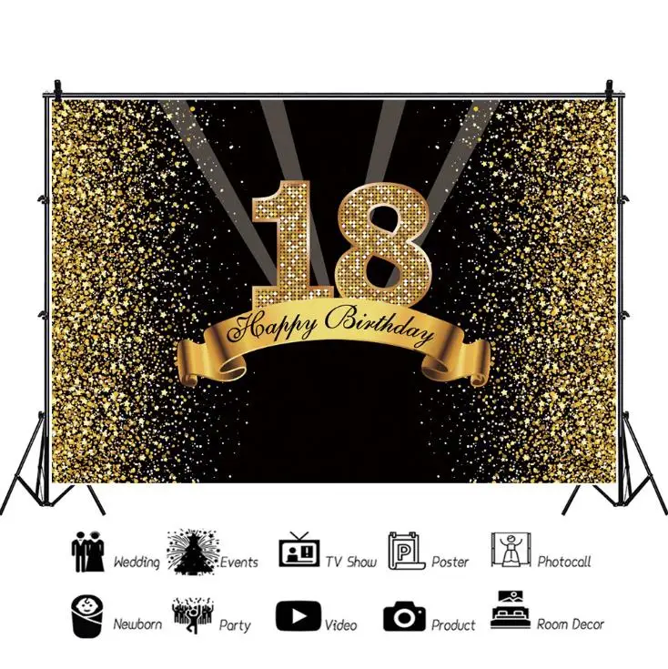 Одноразовая столовая посуда на день рождения 18 лет, блестящая бума...
