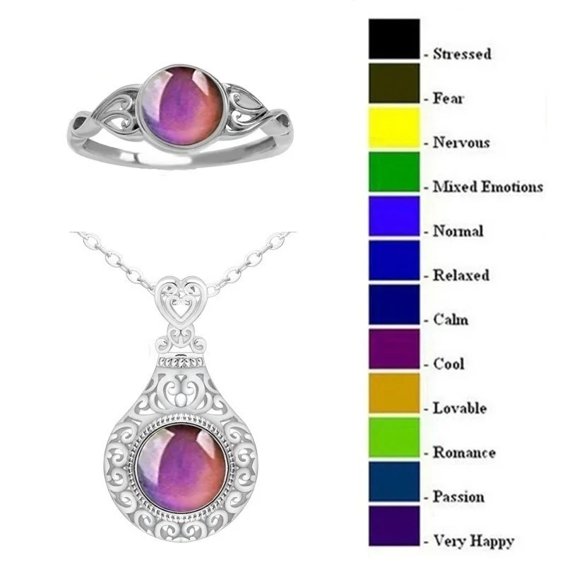 Кольцо женское меняющее цвет с камнем, винтажное Ювелирное Украшение с контролем температуры, колечко настроения, меняющее цвет