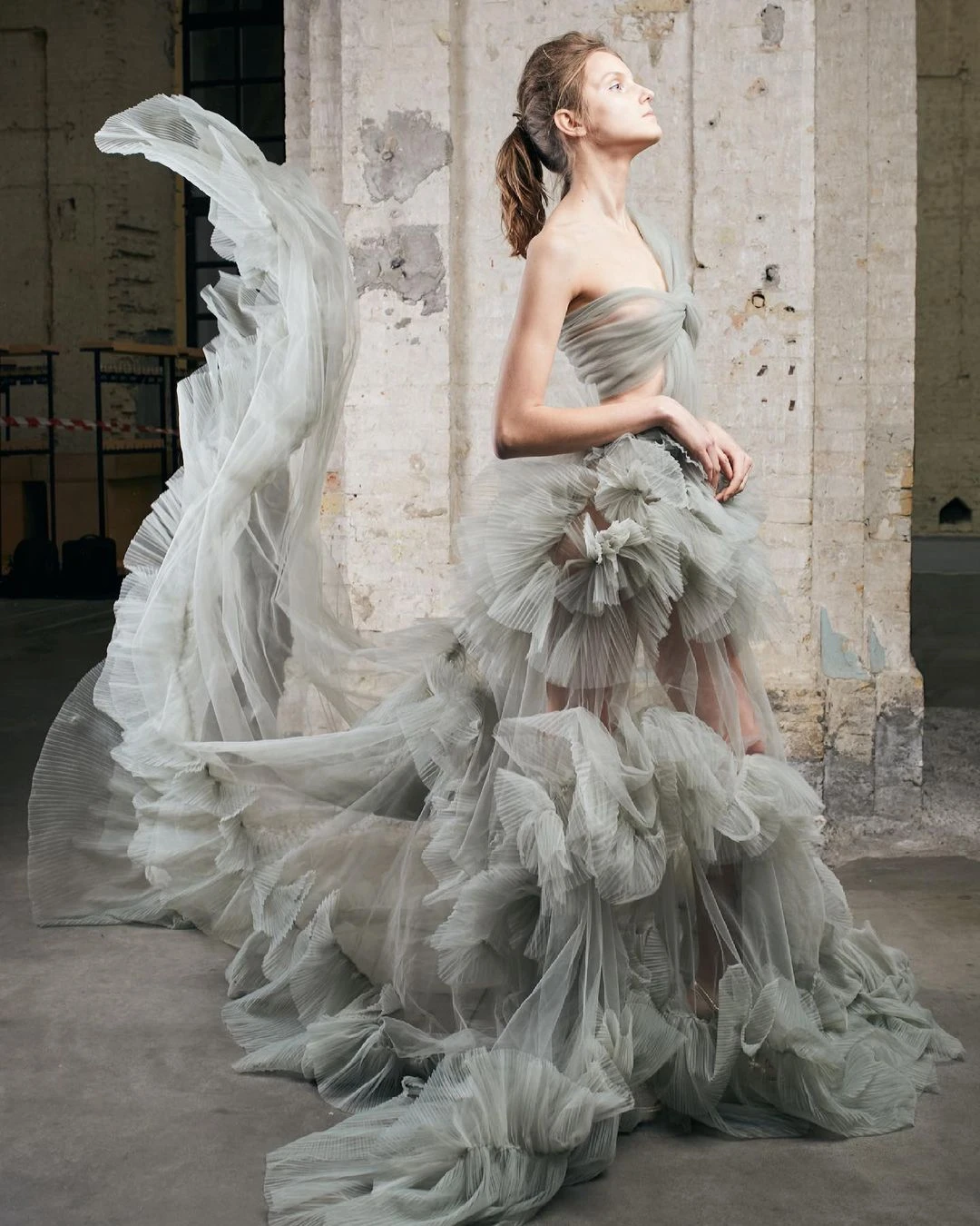 Очаровательное женское Тюлевое платье 2021 от кутюр, платье для выпускного вечера с оборками, вечерние платья на одно плечо, платья для фотосъемки