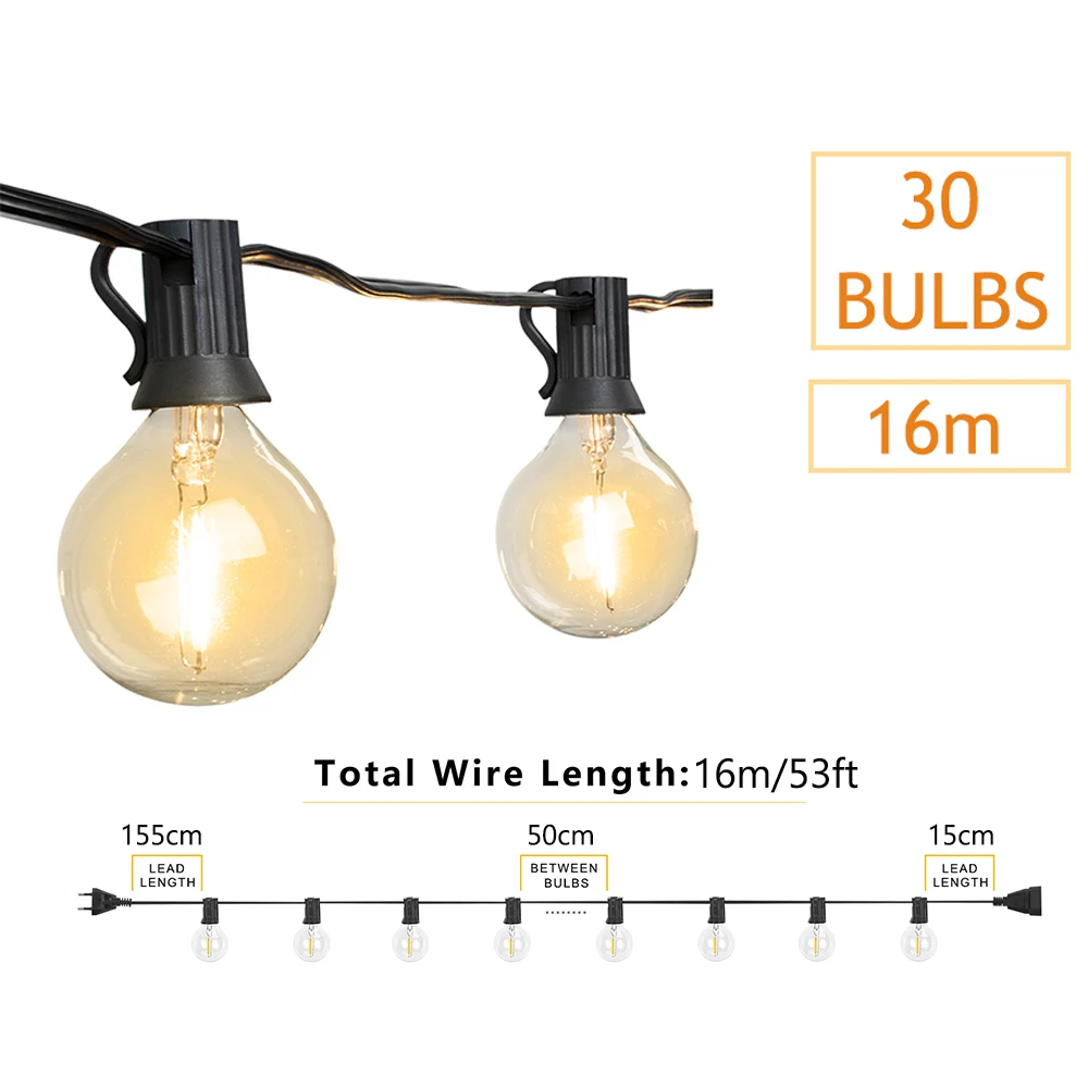 Светодиодсветильник уличная садовая гирлянда G40, Противоударная Ландшафтная лампа-лента, рождественское праздничное украшение