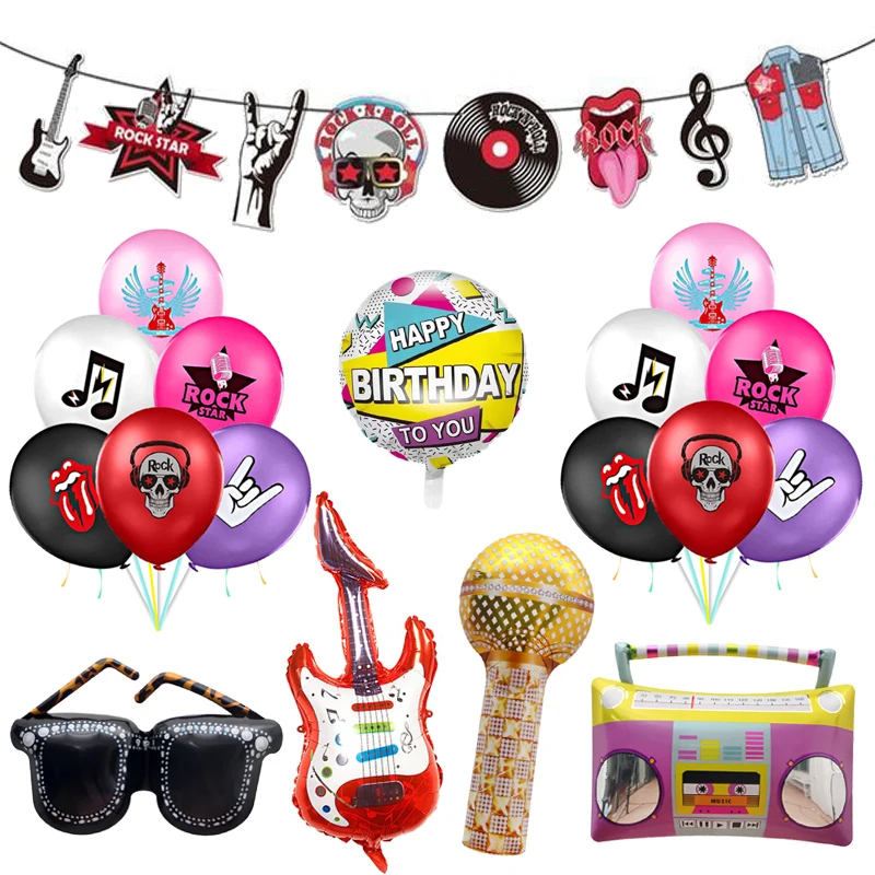Рок-н-ролл воздушные шары видеозапись гитара Лента Микрофон на день рождения ранняя Музыка Радио Детские ретро шары
