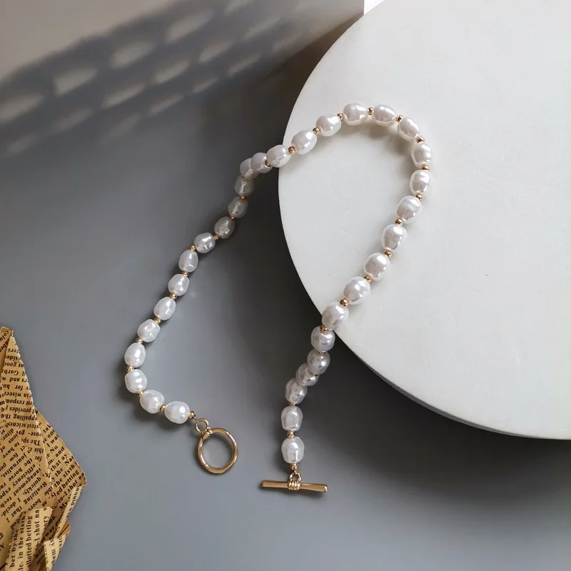 Цепочка с жемчугом женская, простой элегантный чокер неправильной ф...