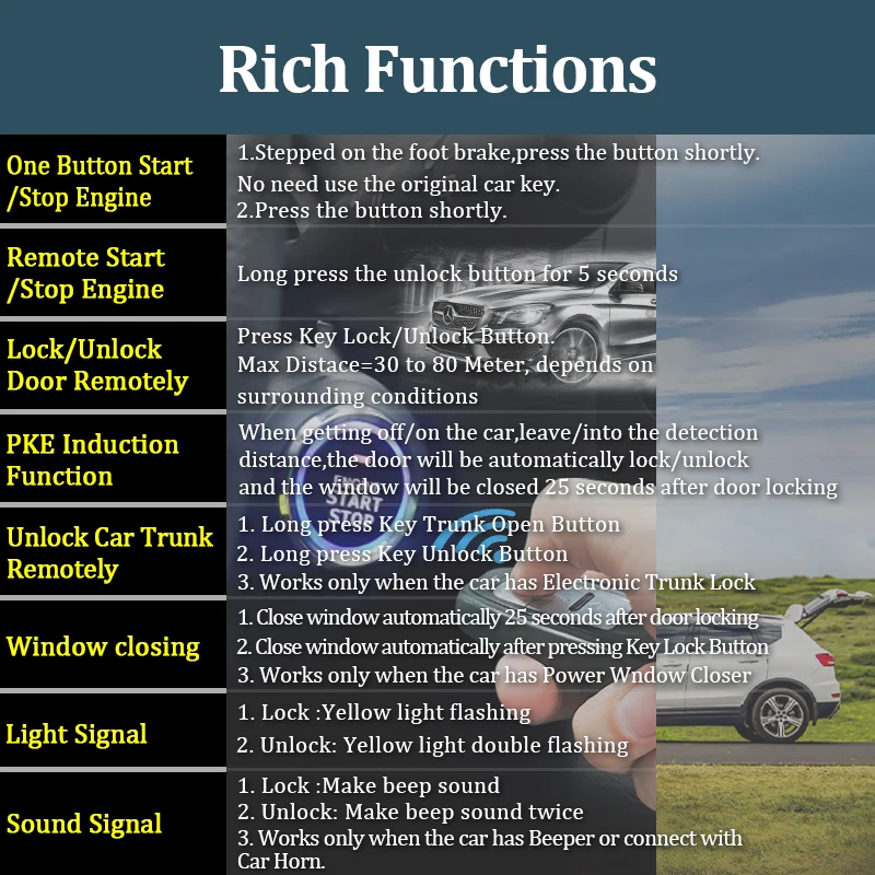 2.PKE бесключевая запись, функция автоматического переключателя датчика блокировки, рядом с автомобилем 2 метра, автоматический датчик разблокировки.