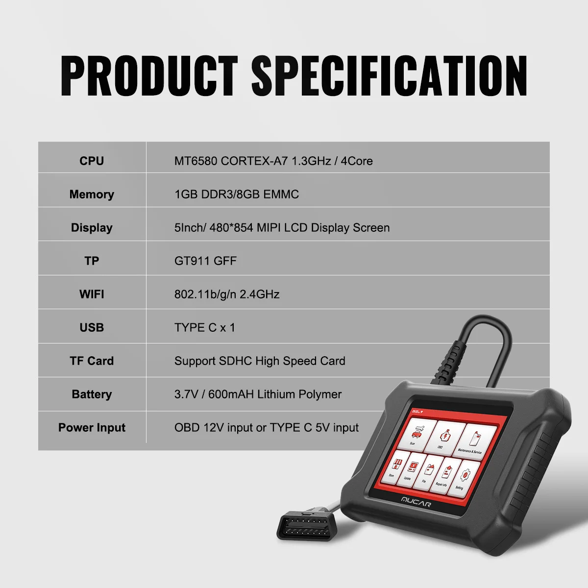 Packing List1*MUCAR CS4 Host 1*Manual 1*Charging cable