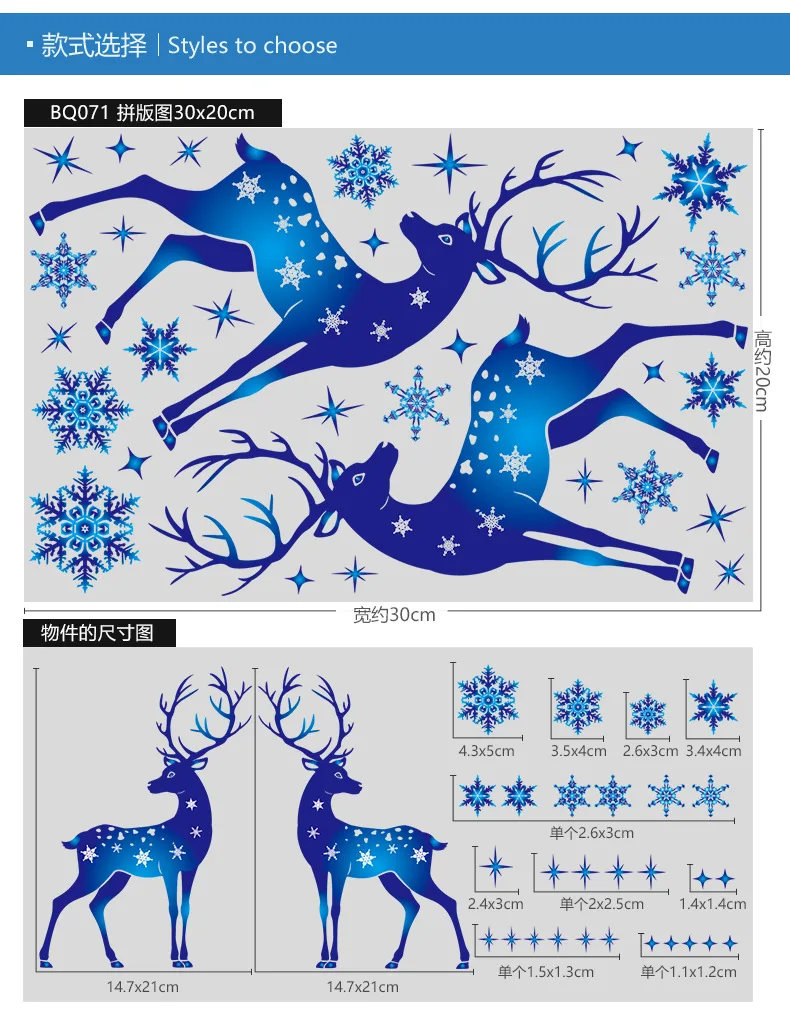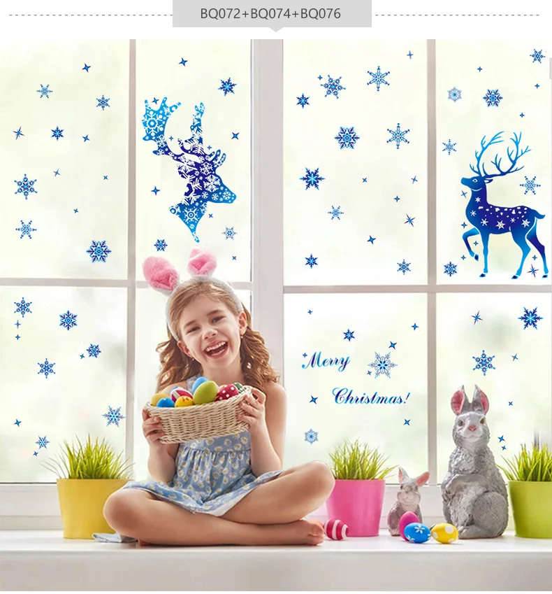 Рождественская синяя Снежинка Лось Электростатическая наклейка DIY ...