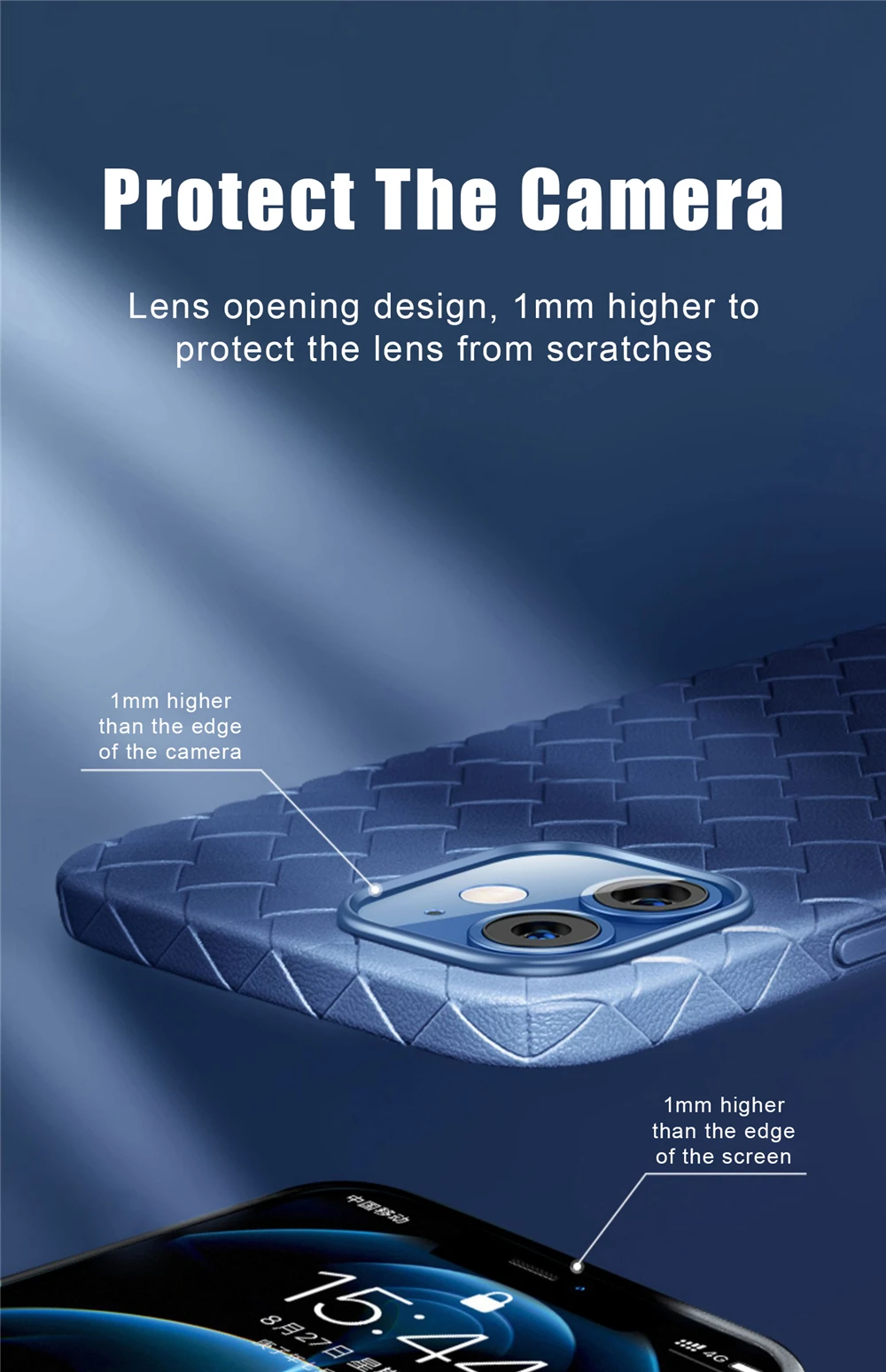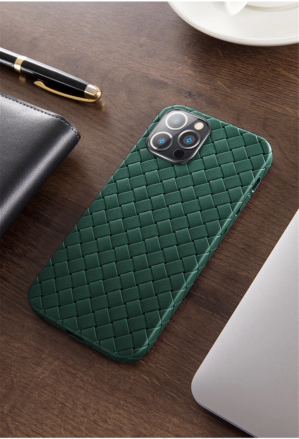 Ультратонкий дышащий защитный кожаный чехол из ТПУ для iPhone 13 11 12 Pro Max Mini XS 6S 7 8 Plus X XR, плетеный сетчатый мягкий чехол