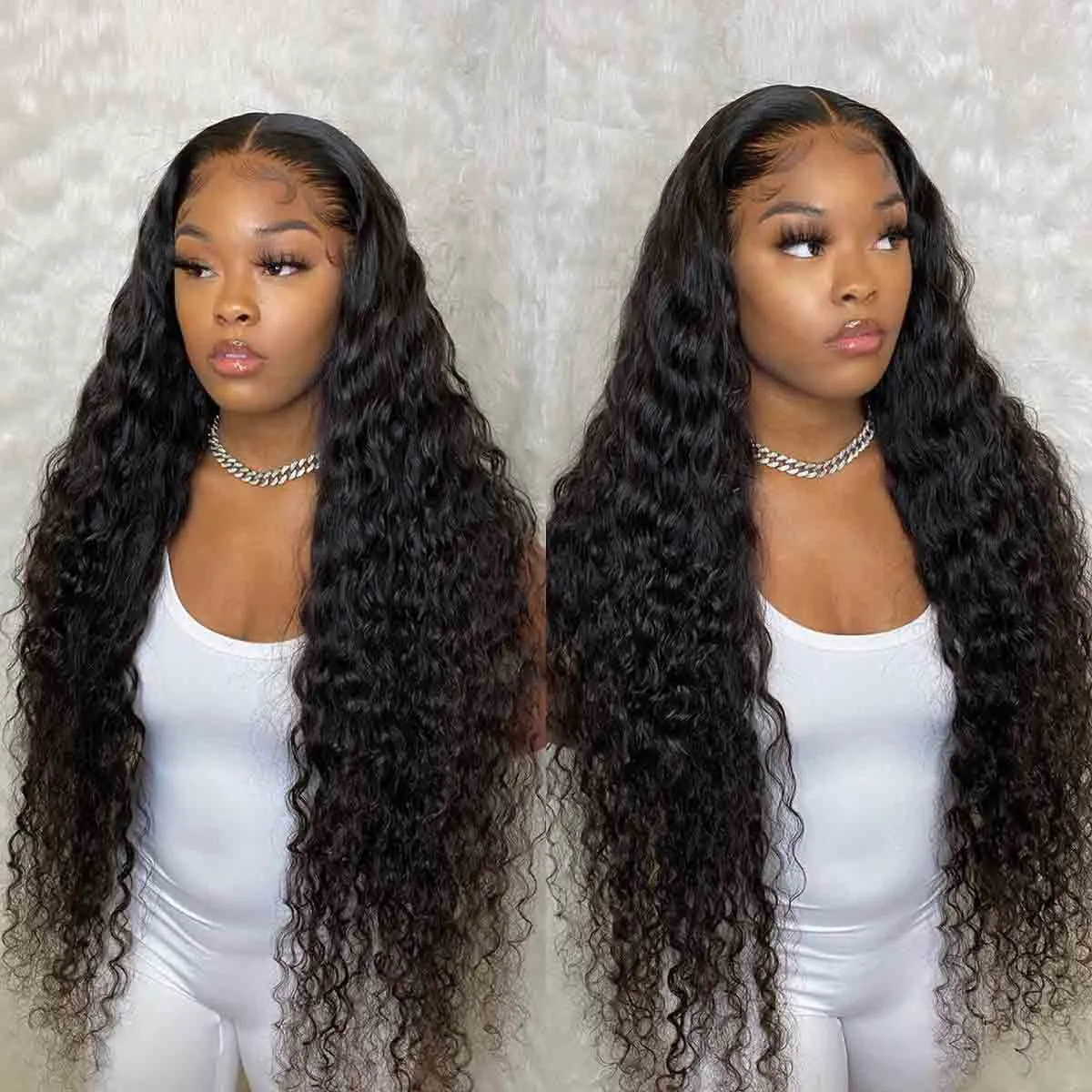 Парик на шнуровке с глубокой волной, бразильские вьющиеся T-образные волосы, парик из человеческих волос, прозрачные влажные и волнистые, с глубокой кудрявой кружевной частью, человеческие волосы
