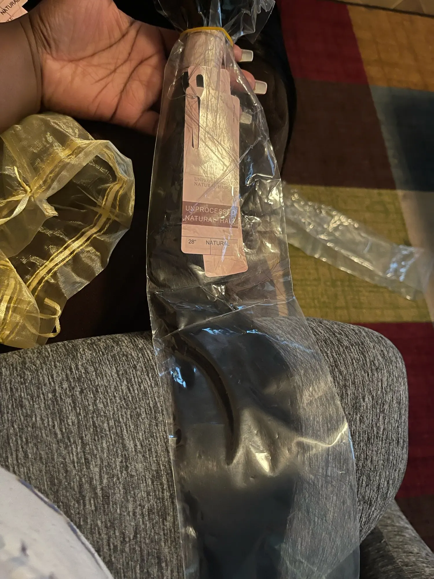 Волосы абсолютно великолепны. Это точно так же, как описано, толстый и длинный. Я не могу ждать, чтобы помыть его и начать приготовления к носке.