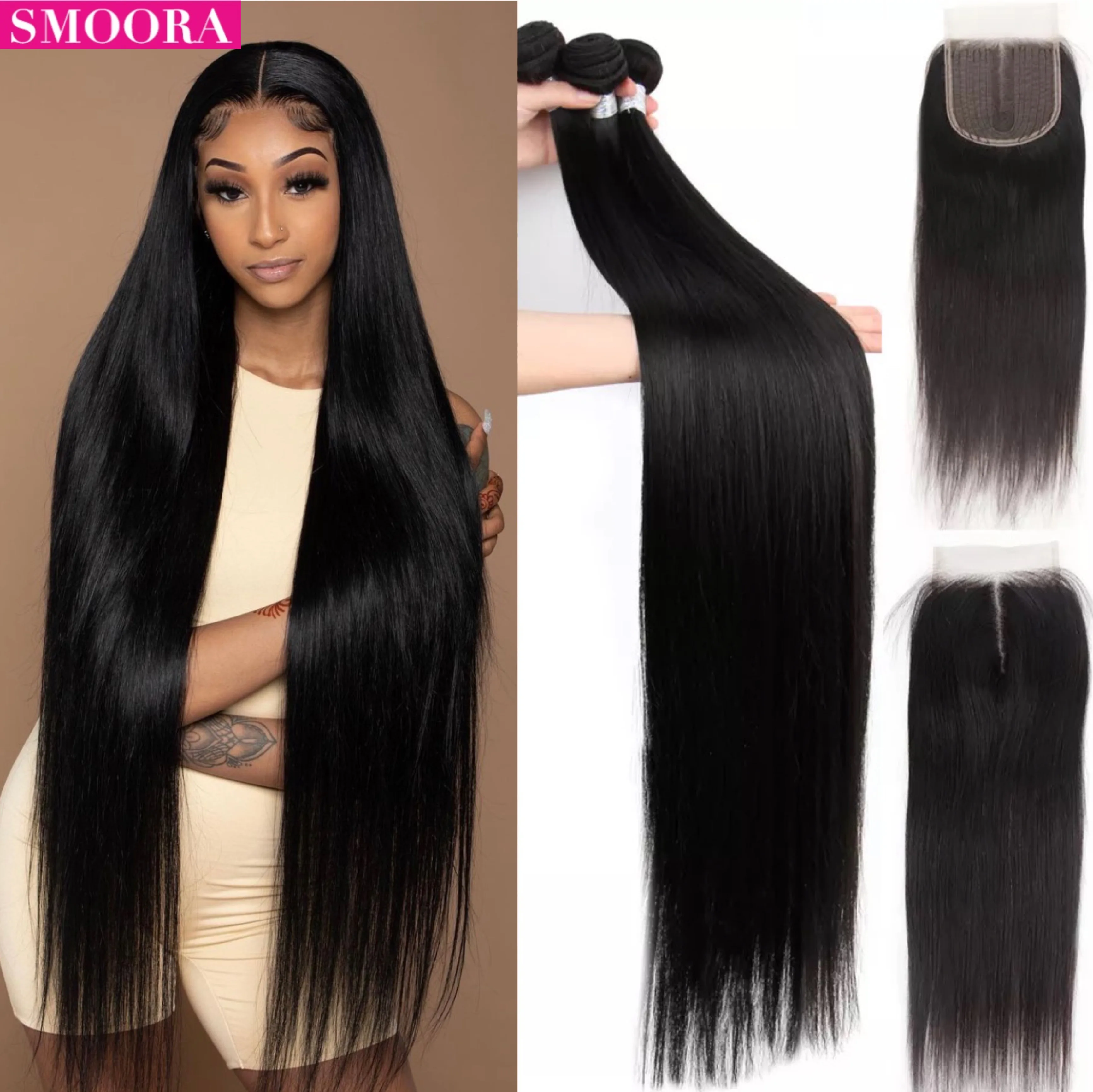30 32 38 40 бразильские пряди с застежкой, прямые человеческие волосы с застежкой, бразильские плетеные волосы Remy 5x5x1 для женщин