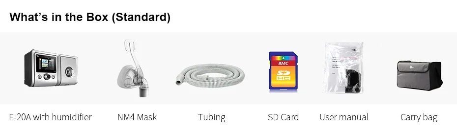 E-20A с масками и другими сопутствующими аксессуарами были поставлены во многие больницы дома и за рубежом, используя здоровые и экологически чистые материалы машины и мягкие и здоровые силиконовые подушки.