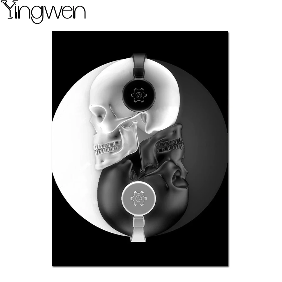Скандинавский череп сплетни наушники черный и белый 5D DIY алмазная живопись современный домашний декор полная Алмазная вышивка мозаика настенное искусство