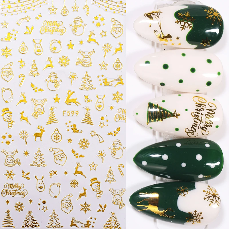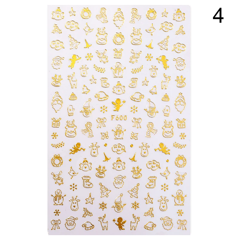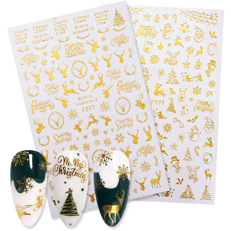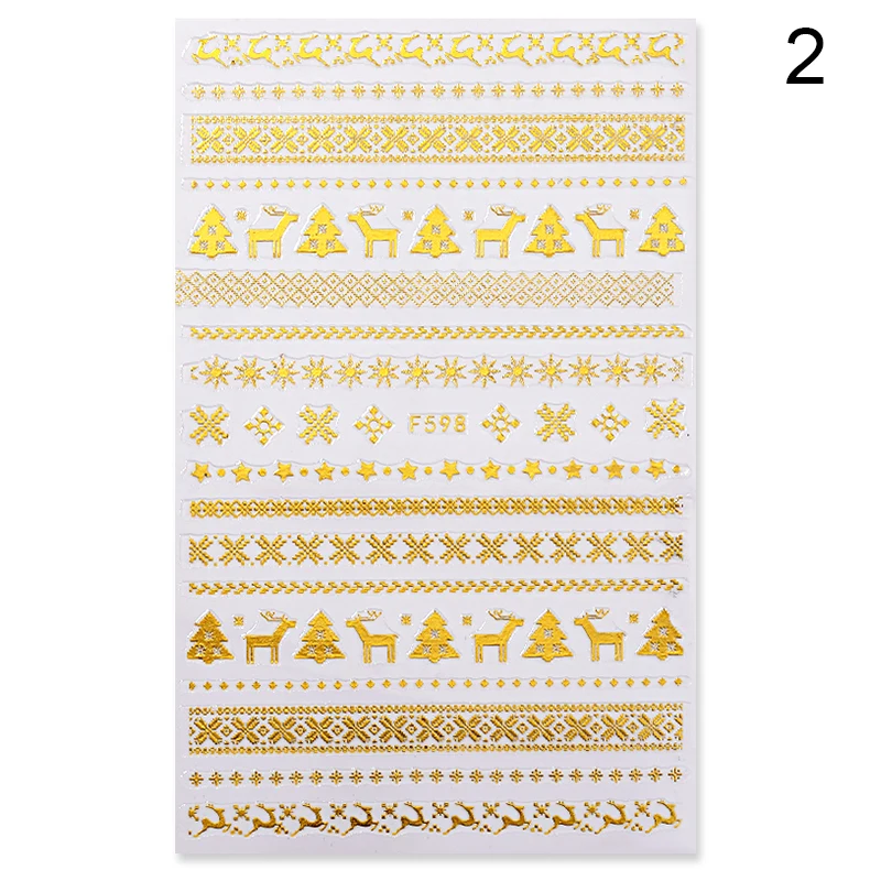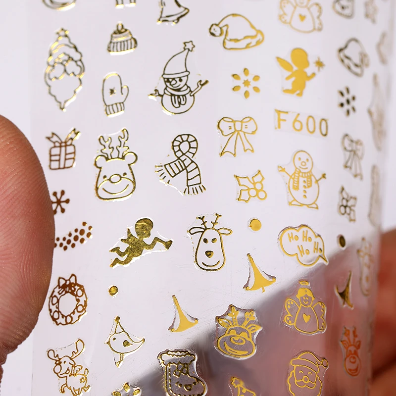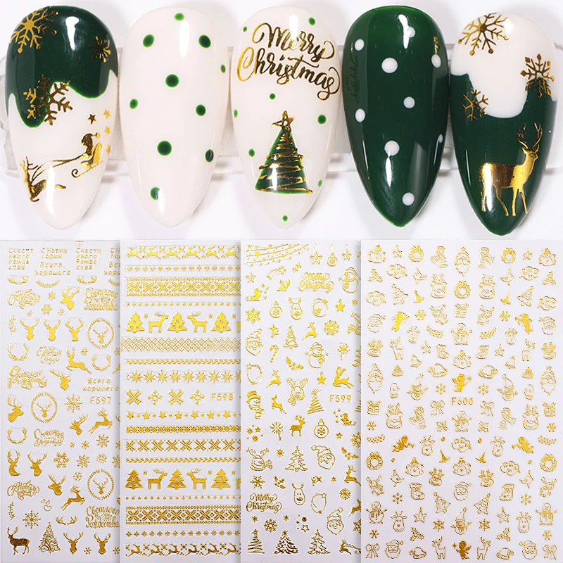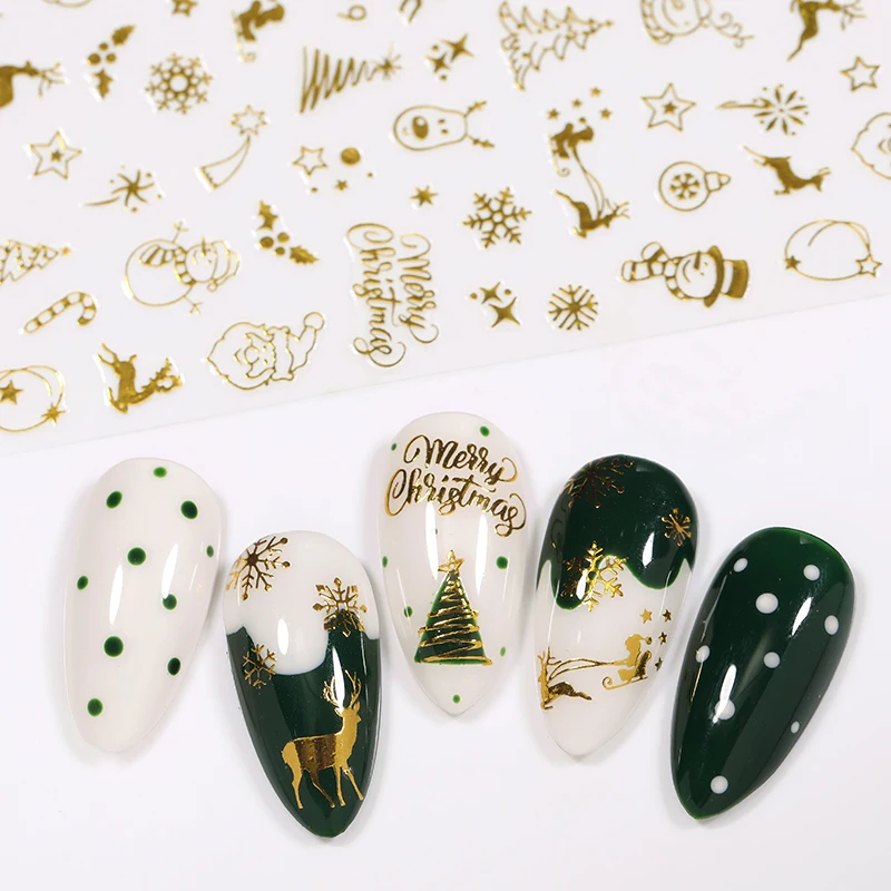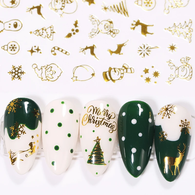 Золотые Бронзовые 3D Рождественские украшения для ногтей, наклейки, сверкающие белые красочные блестки, геометрия, снежинка, зимняя Фольга-слайдер