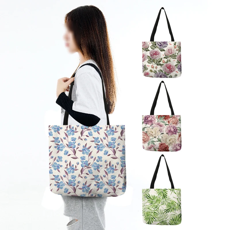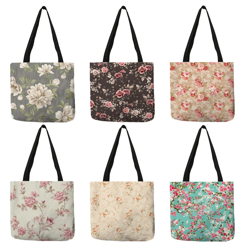 Женская сумка-тоут с цветочным рисунком, эко-льняные сумки для поку...