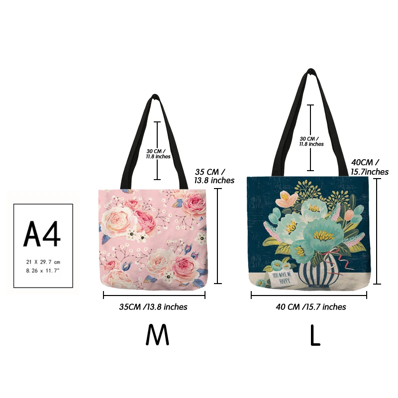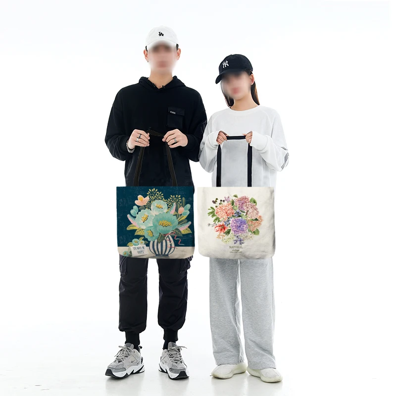 Женская сумка-тоут с цветочным рисунком, эко-льняные сумки для поку...