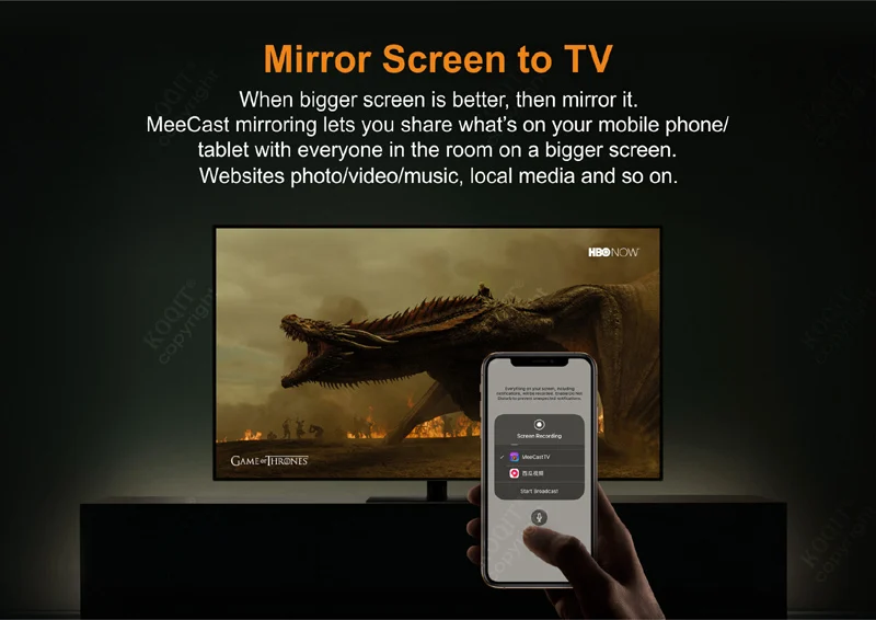 • Built-in MeeCast TV Stick,Can Push Web/Local videos and pictures and Mirroring Phone/Tablet screen to Big TV,VR Remote control the tv box...