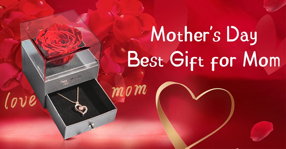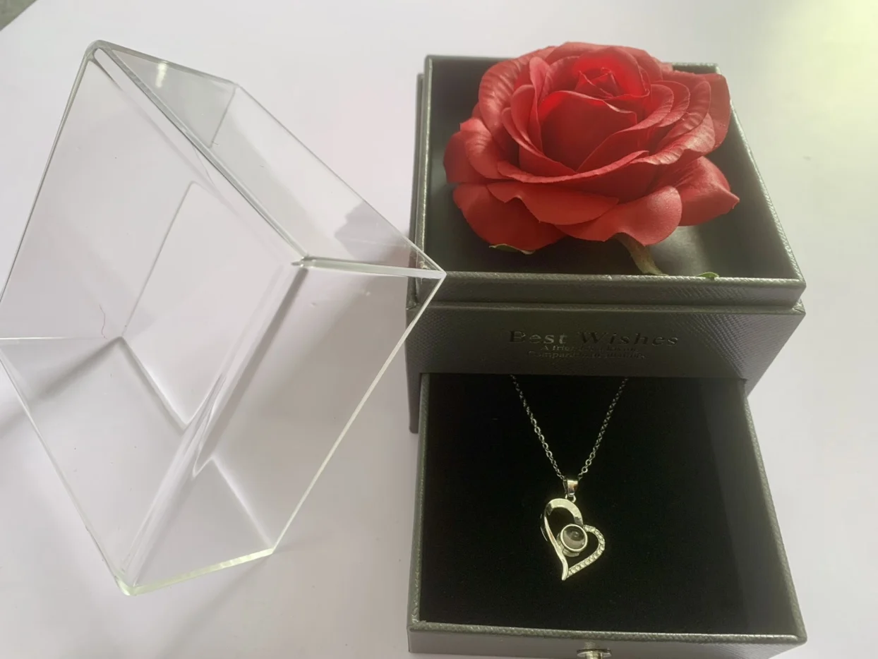 Шкатулка для ювелирных изделий в виде натуральной неизменной розы на 100 языках ожерелье с надписью Love и сохраненными цветами для подарка ей