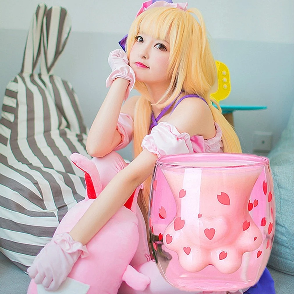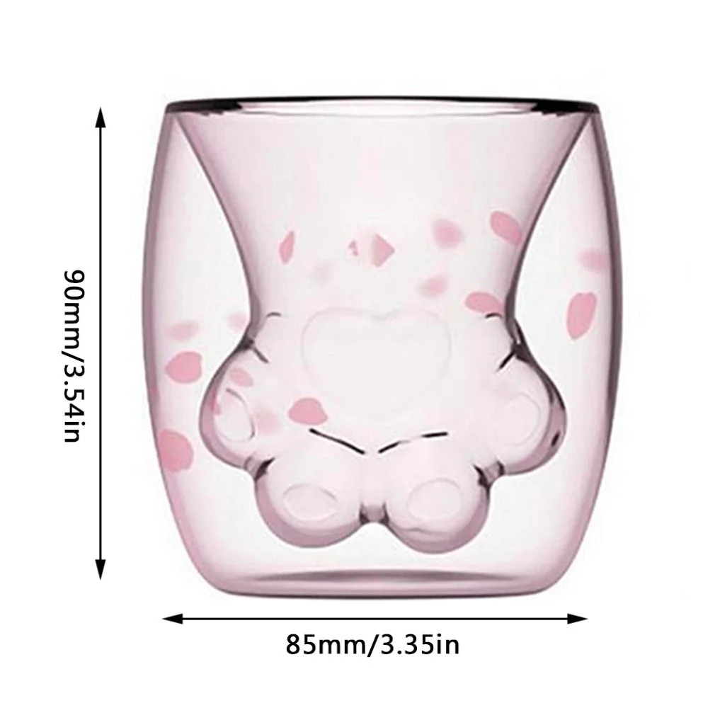 Кружка с кошачьими когтями BOUSSAC, креативная кофейная кружка, мультяшная Милая кружка с молочным соком для дома и офиса, Розовая прозрачная двойная стеклянная чашка с когтями вишни