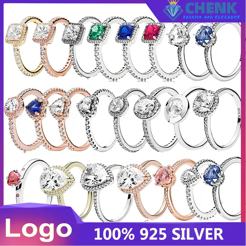2021 серебро 925 пробы с логотипом кольцо Роскошные блестящие драгоценные камни ювелирные изделия подходят для девушек розовое золото