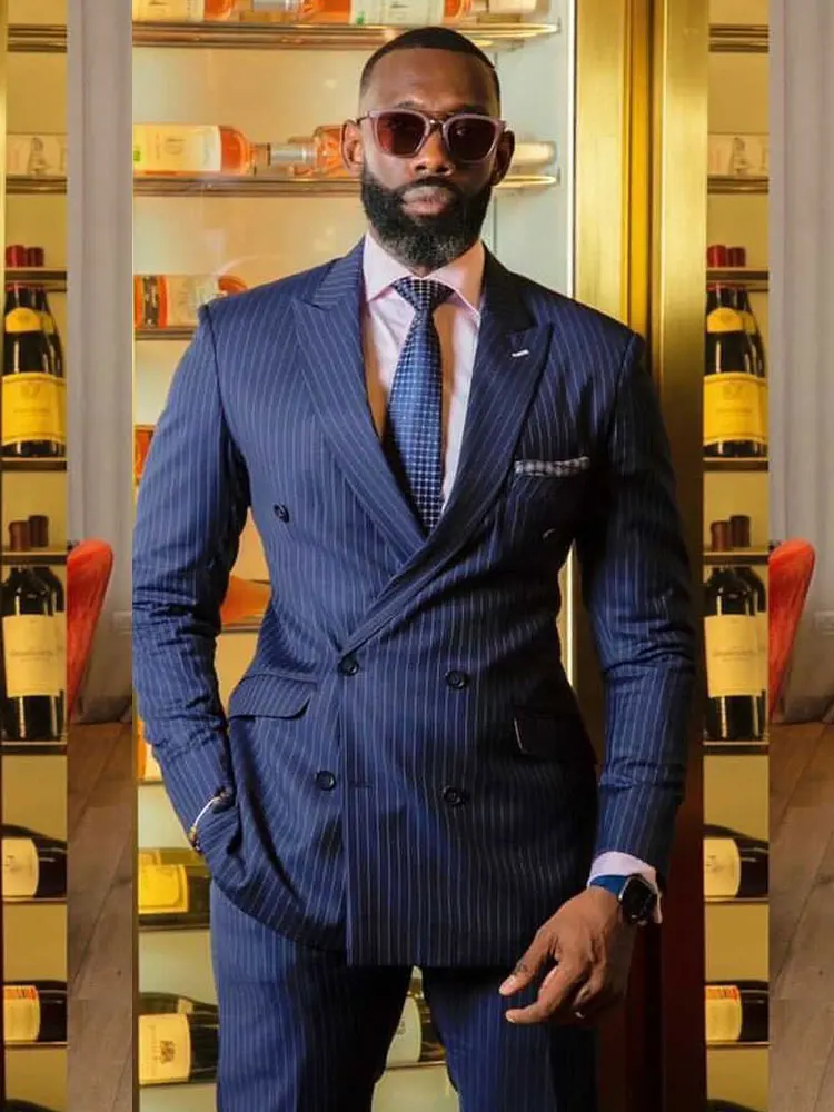Красивые полосатые мужские костюмы, комплект из 2 предметов, пиджак и брюки, деловой мужской блейзер, приталенный костюм для свадьбы, смокинга для жениха, мужской костюм