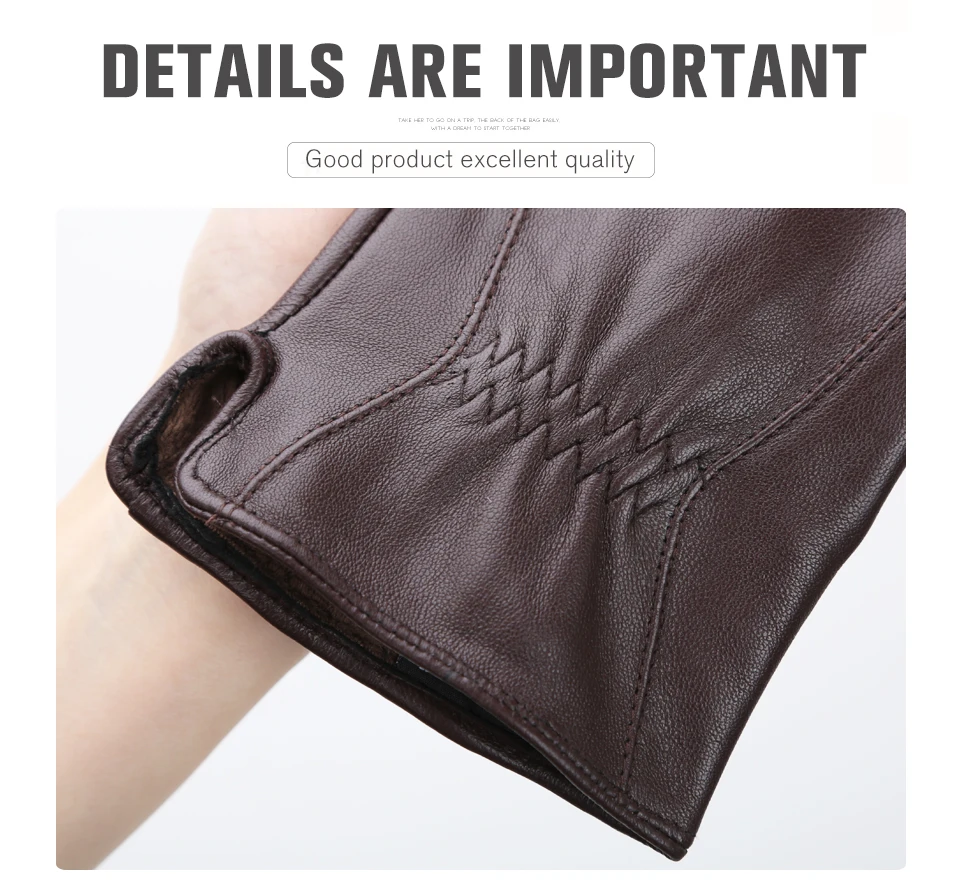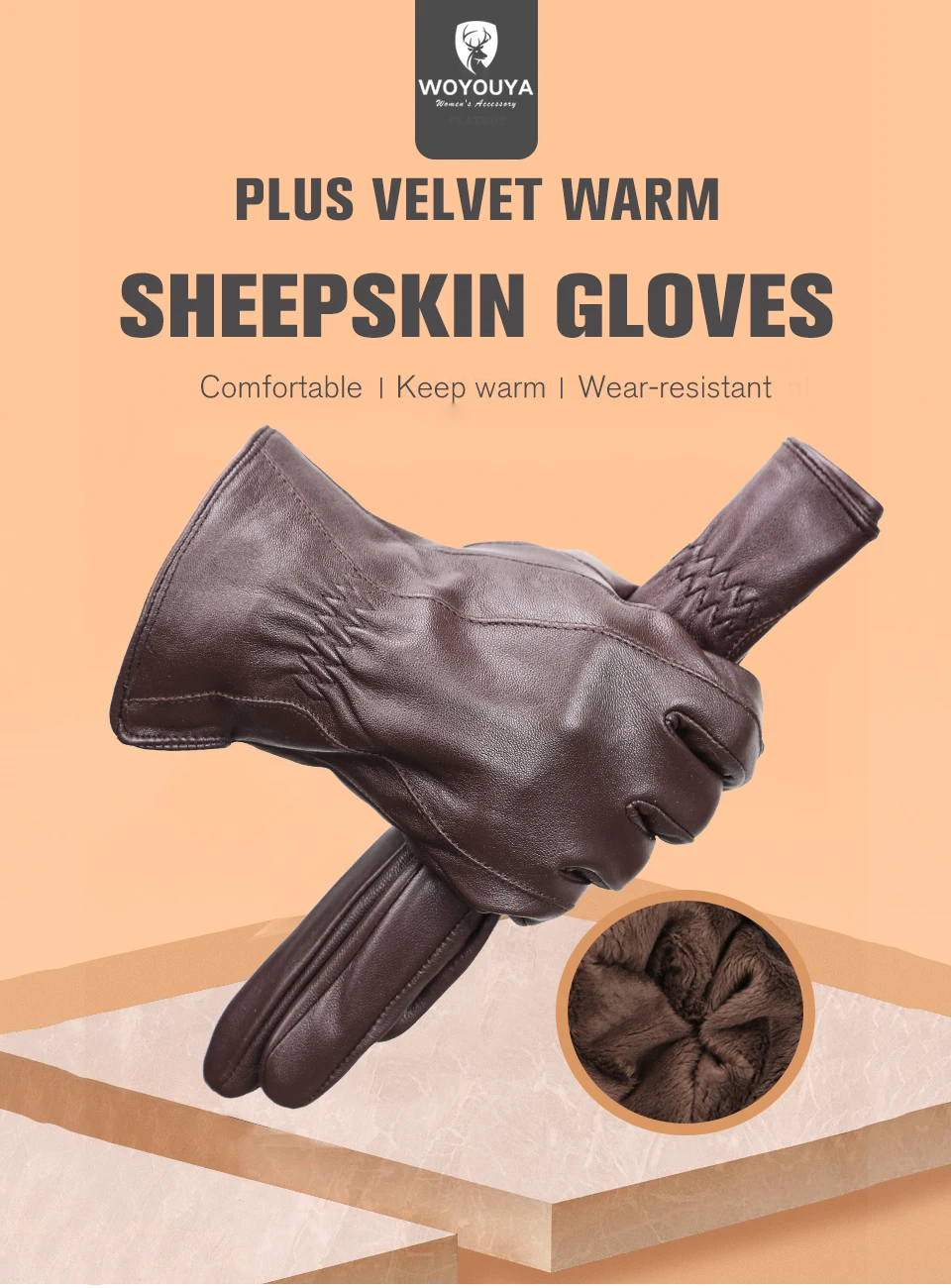 Мужские перчатки из овчины, зимние теплые короткие тонкие кожаные перчатки для вождения с бархатной подкладкой, новинка, высококачественные зимние перчатки для мужчин-8025Y