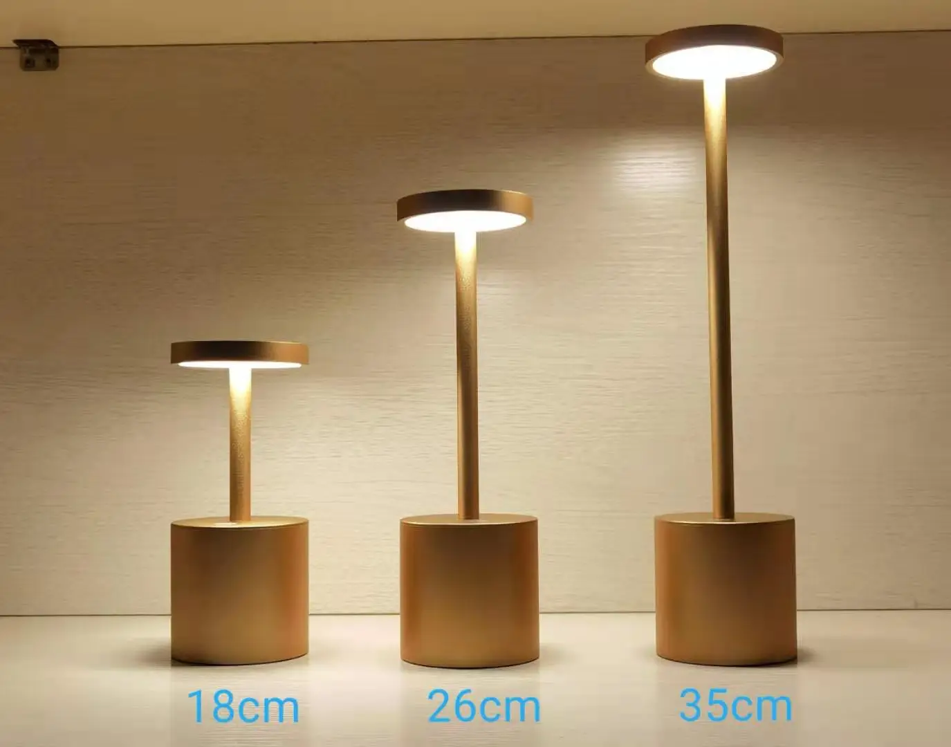 Название: TD02Мощность: 3 ВтЦвета: черный, золотой, серебряный, серыйМатериал: алюминий + акрилБатарея: 2000mAn литиеваяСветильник 2700K (Теплый светильник)CRI(Ra):90Зарядка: USB линияПереключатель: Сенсорное затемнениеСертификат: CE & RoHsВремя зарядки: 3-4 чВремя работы: 10-12 чРазмер лампы: 1.H: 35 см 2.H: 26 см 3.H: 18 смВес брутто: 0,8 кгПосылка: 9x9x36cmАксессуар: лампа. Руководство. Usb-кабель для зарядки