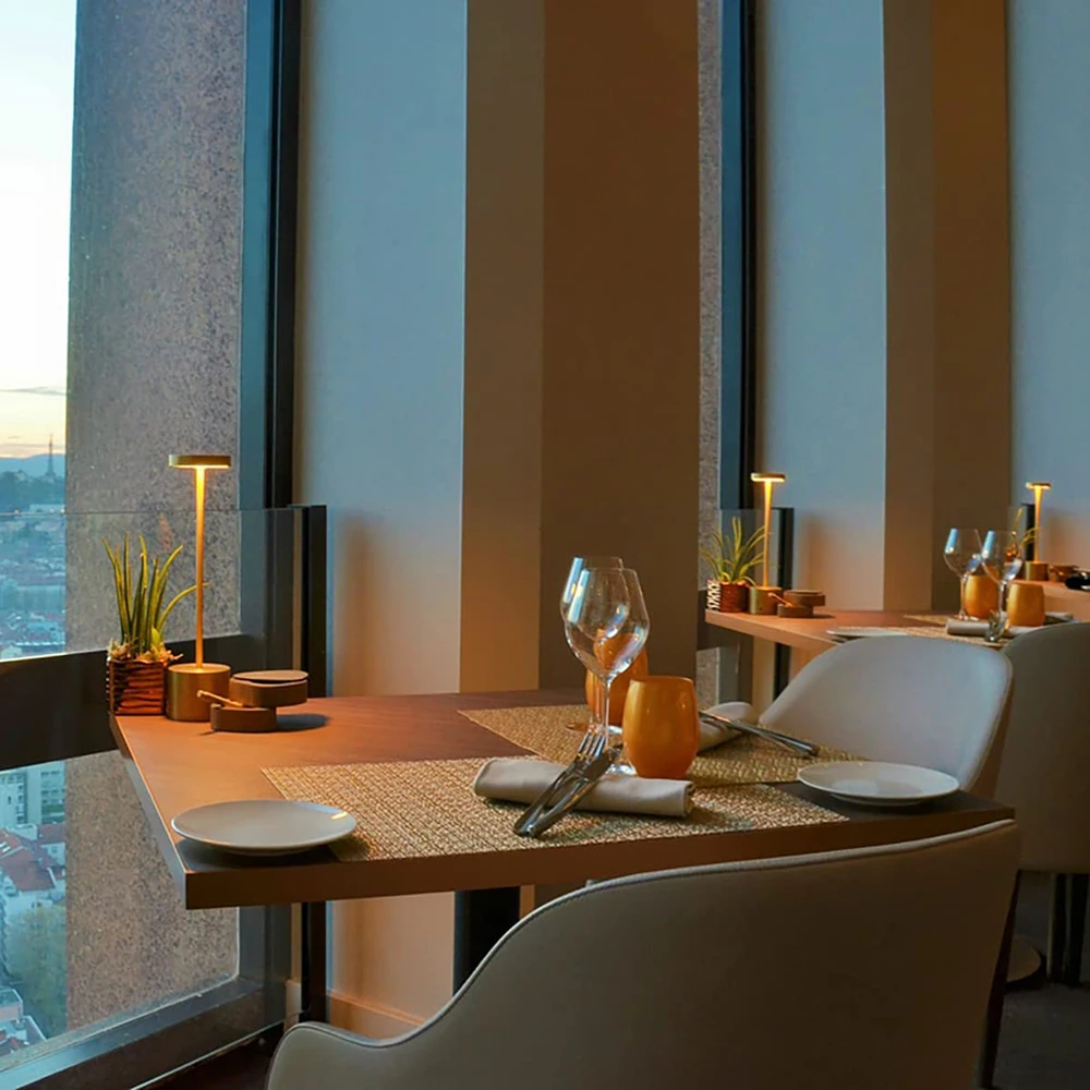 Алюминиесветодиодный Светодиодная настольная лампа, современный светильник для ресторана, ужина, креативный светильник с USB-зарядкой для бара, отеля, столовой