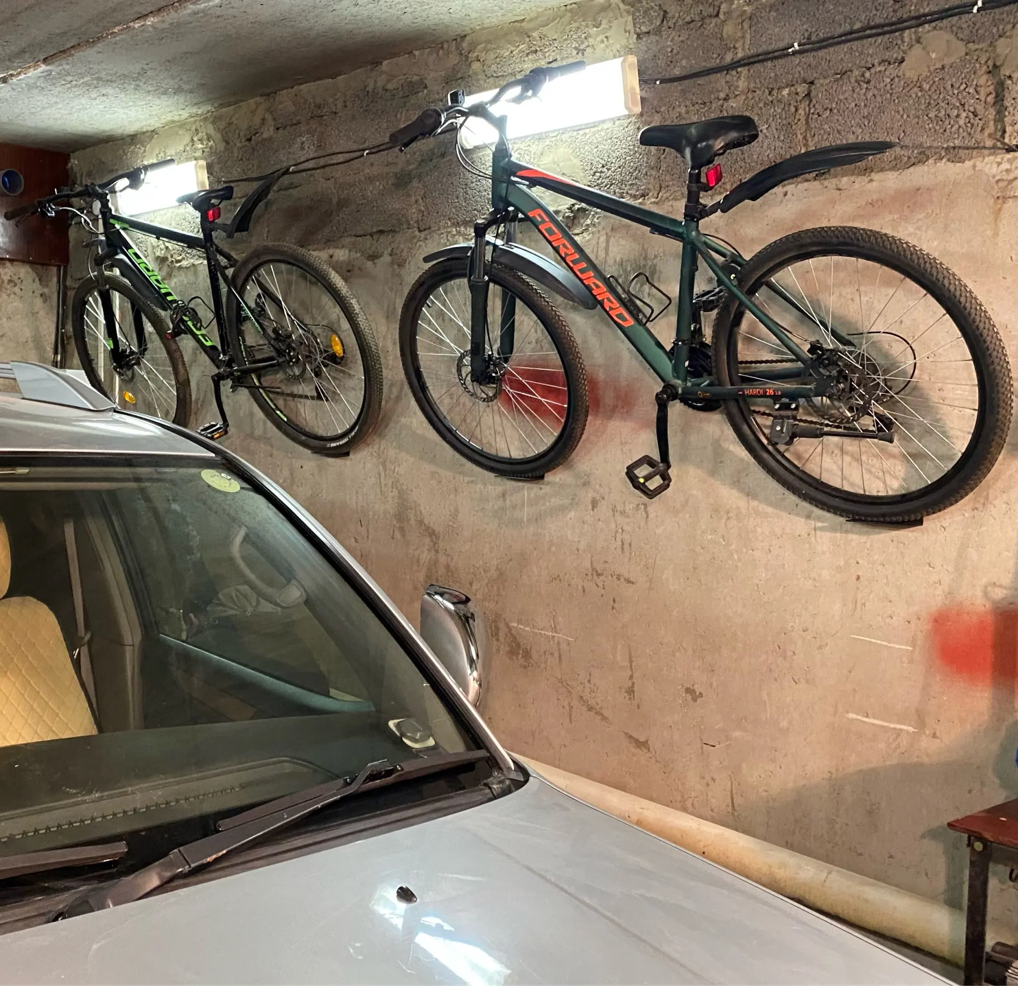 Perfecto soporte pared, se almacena muy bien y no ocupa sitio la bici en la plaza de garaje.
