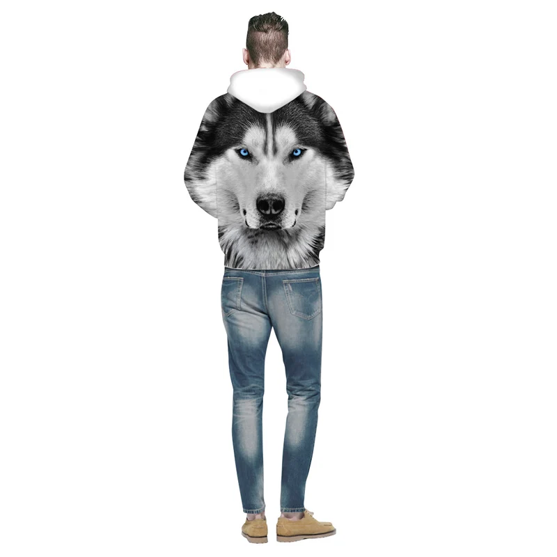 Мужская толстовка с капюшоном, осенняя, с 3D-принтом волка