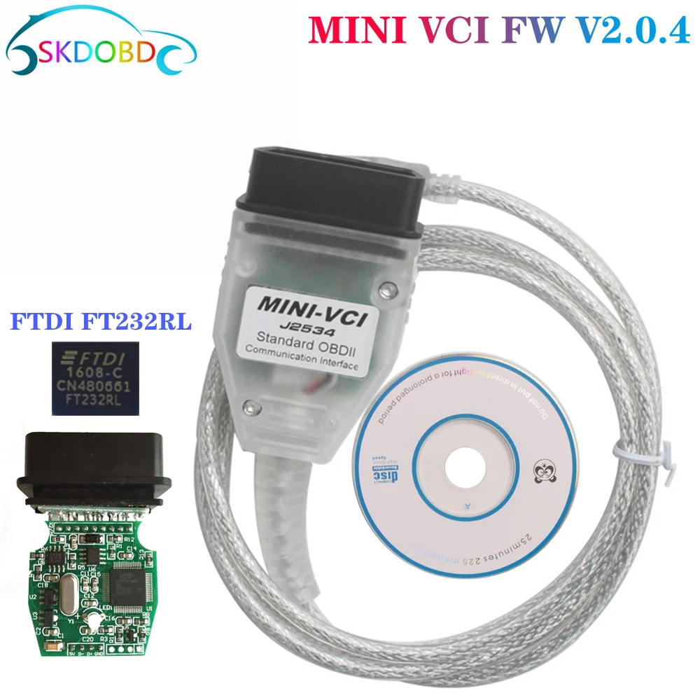 Для Toyota MINI-VCI V2.0.4 стабильная поддержка VPW протокол V16.00.017 FT232RL чип