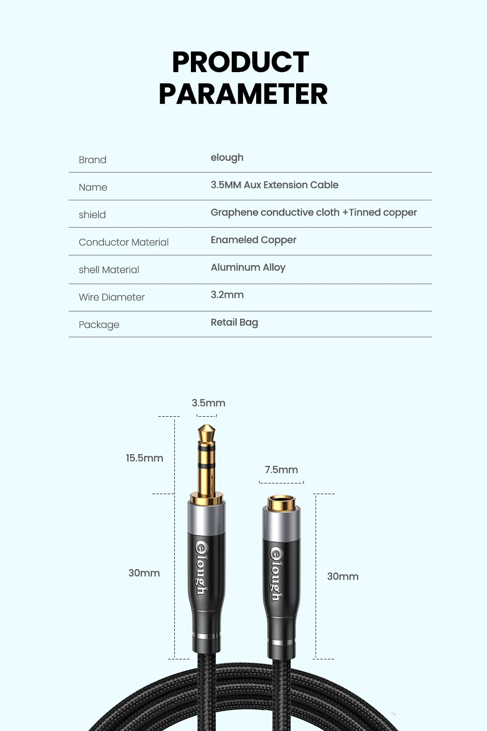 Feature 7headphone extension cable / headphone adapter / 3.5mm audio cable