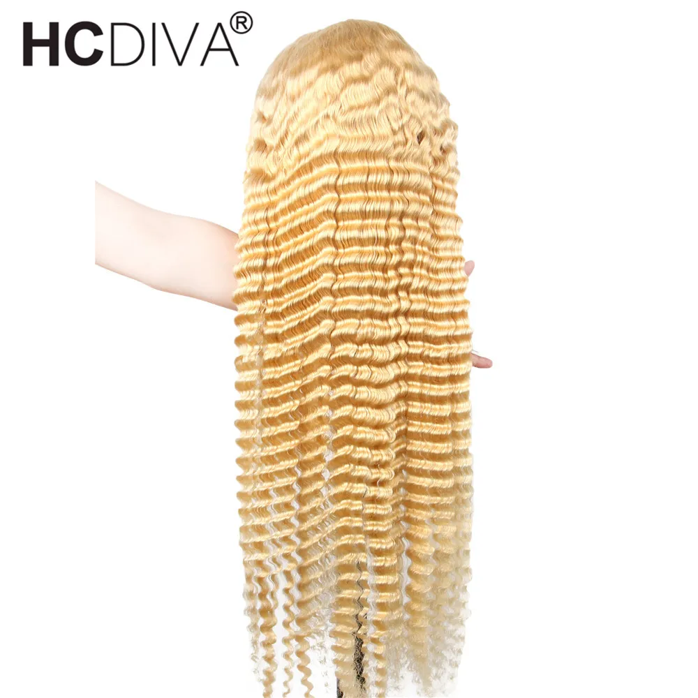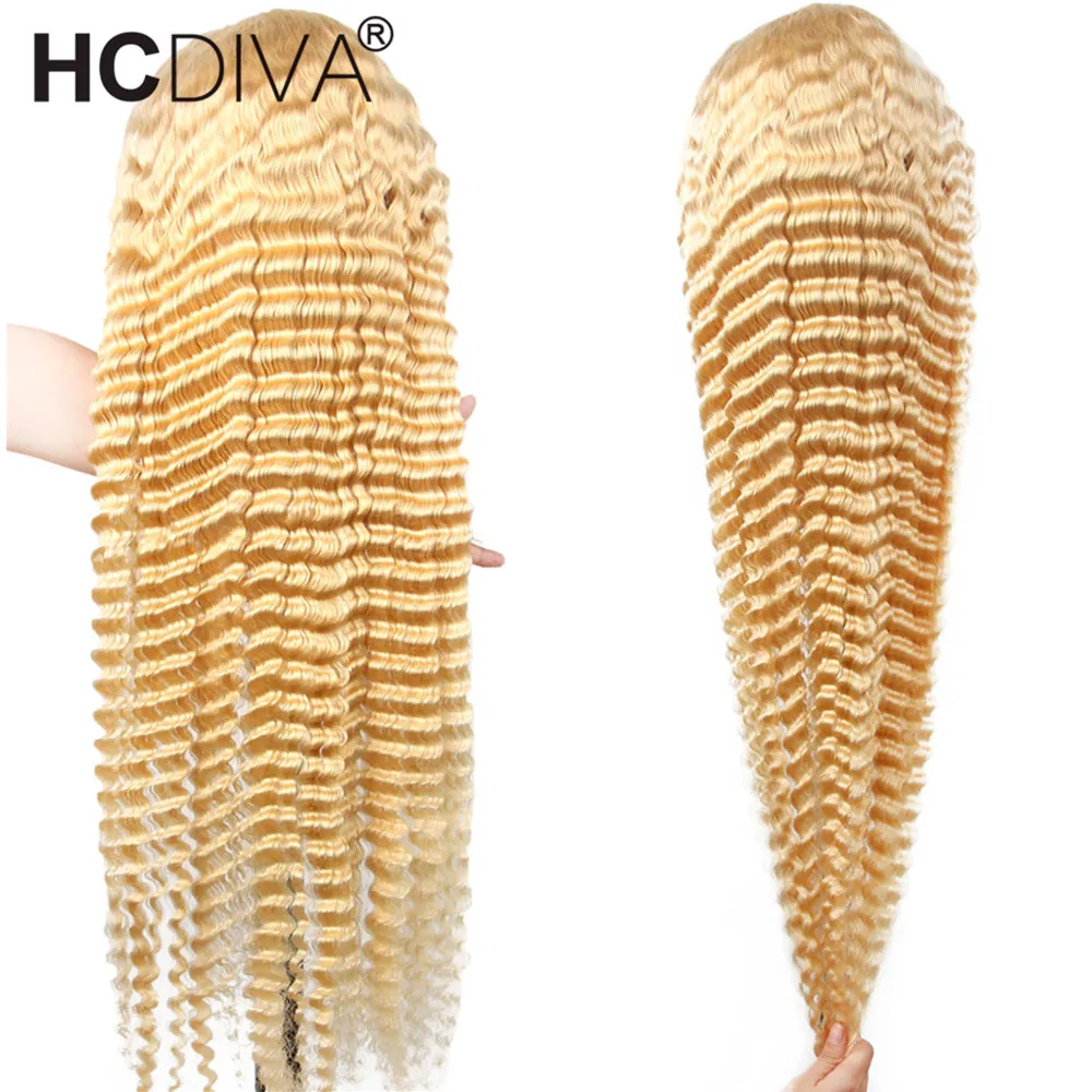 613 Бразильский парик блонд с глубокой волной, часть сетки 13x1 T, парик с глубокими вьющимися кружевами, прозрачный кружевной короткий парик из человеческих волос для женщин