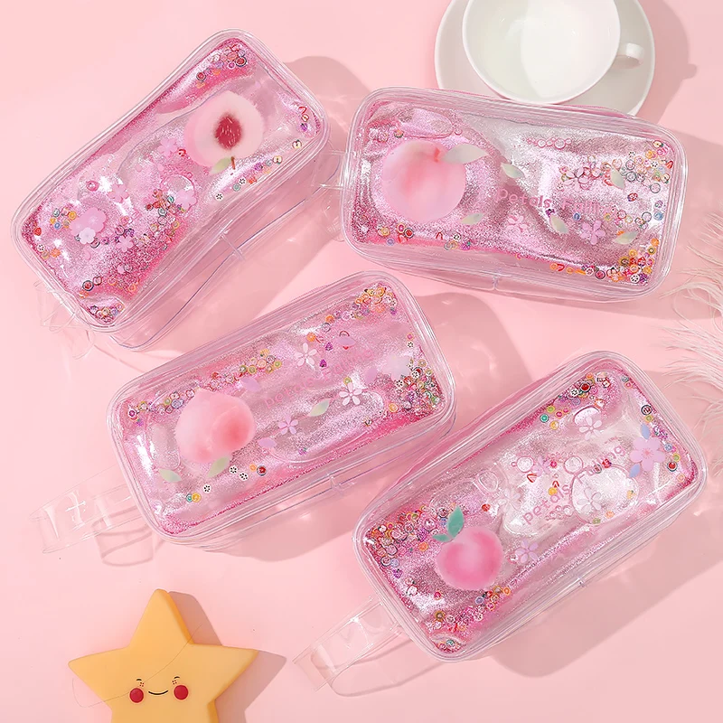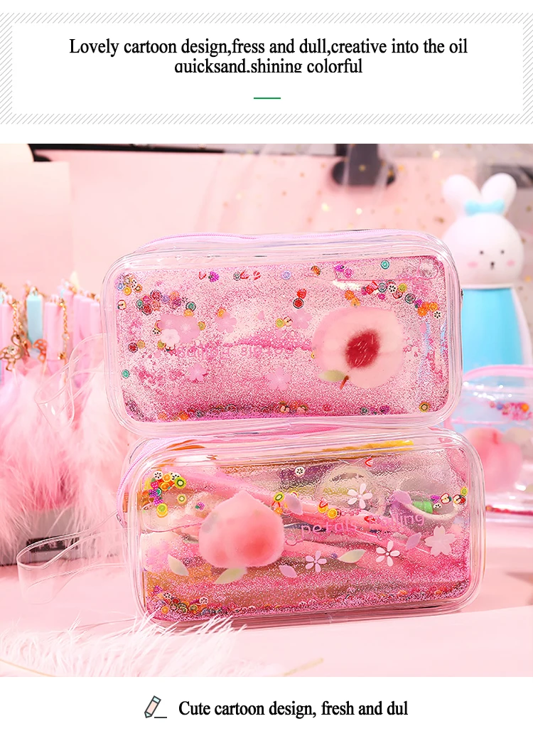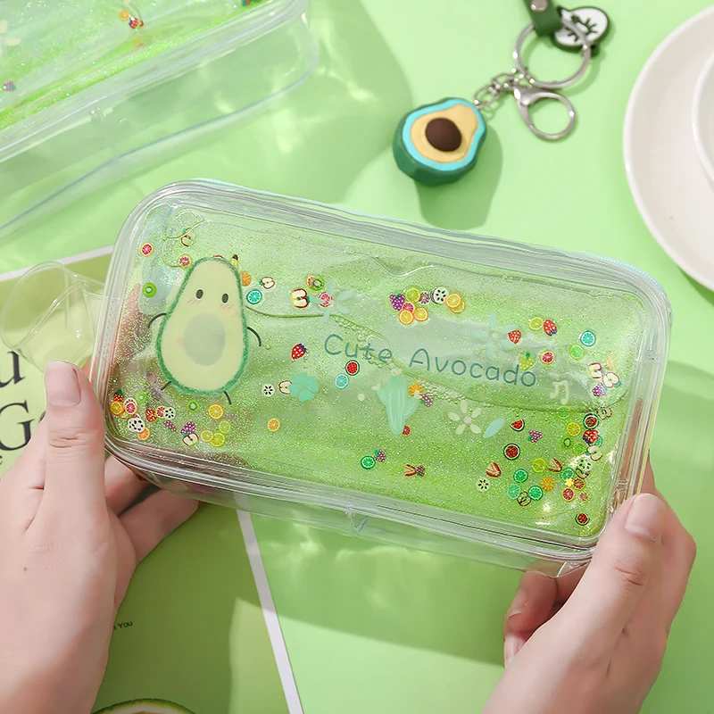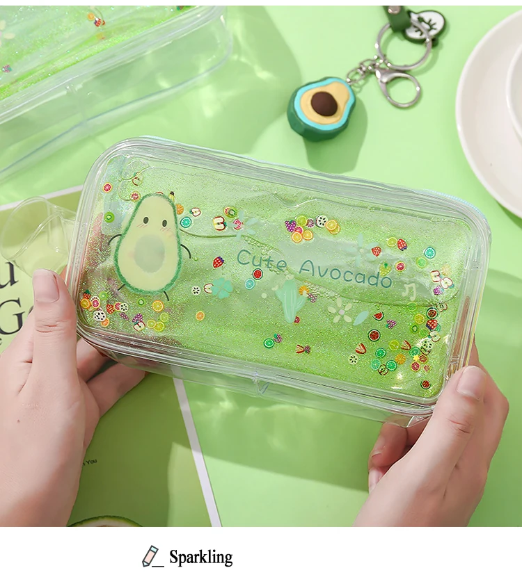 Пенал прозрачный с сыпучим песком, милая вместительная коробка для карандашей, креативная шкатулка с авокадо для средних и студенческих канцелярских принадлежностей