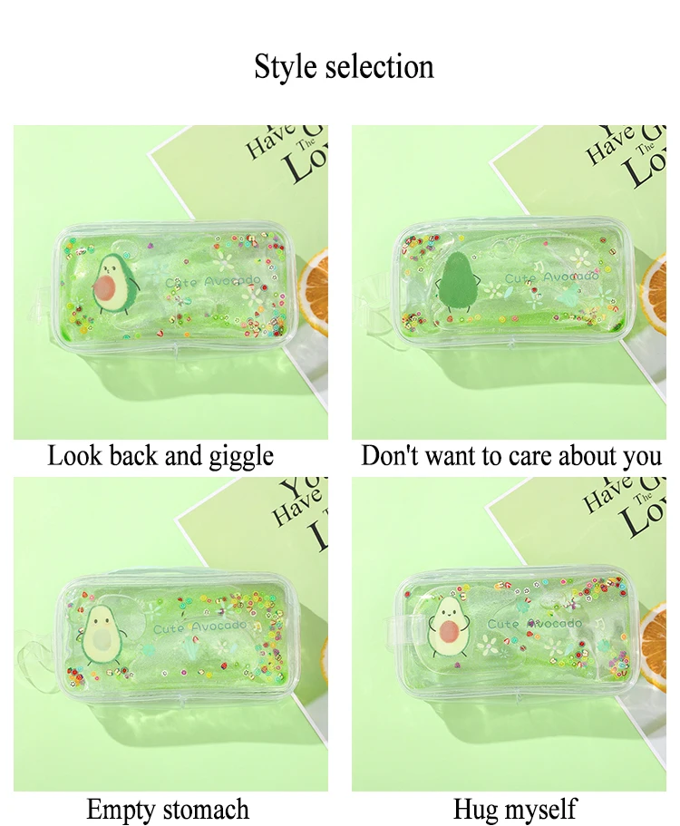 Чехол для карандашей Kawaii, с подвижным песком, авокадо, большой е...