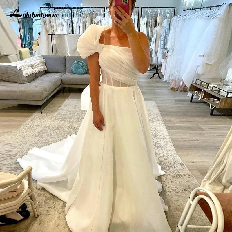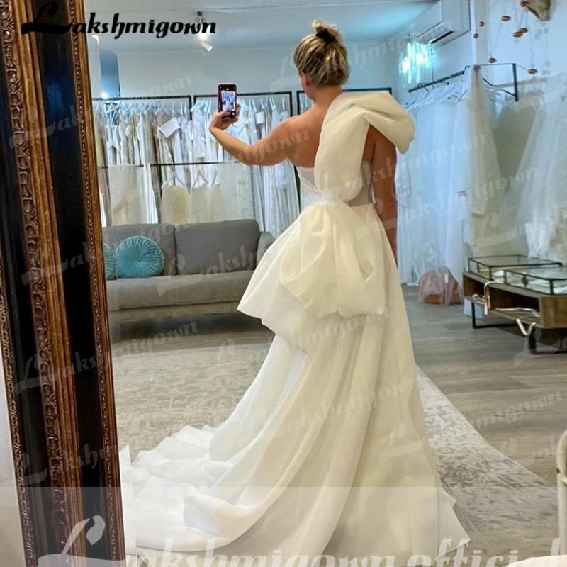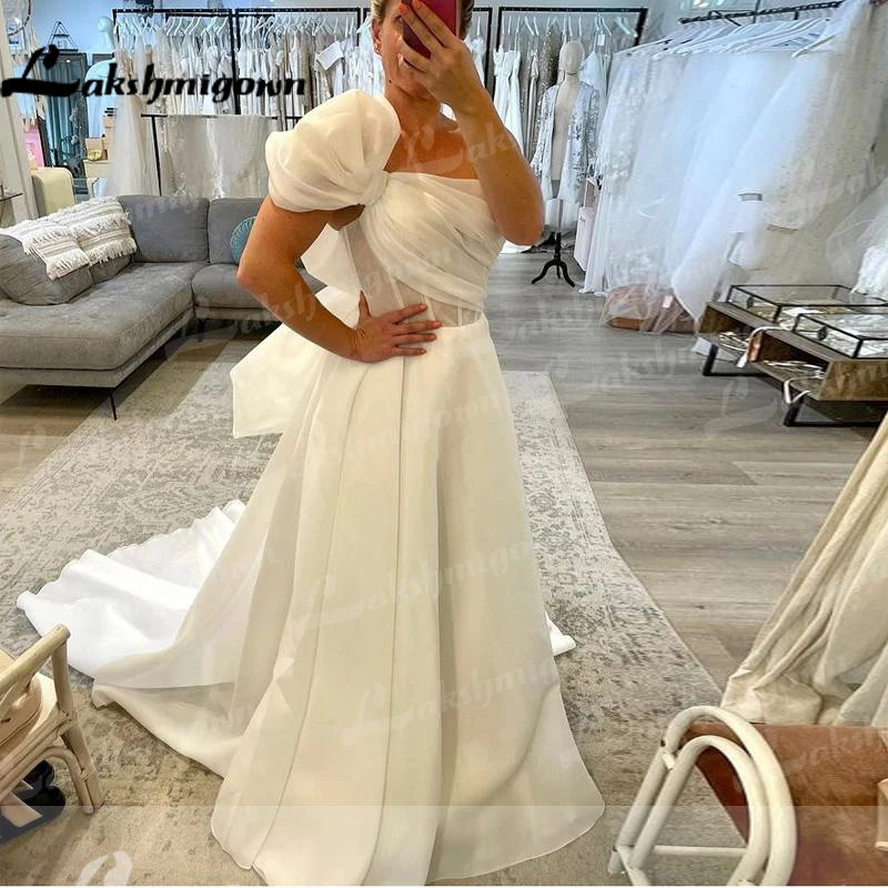 Уникальные свадебные платья трапециевидной формы на одно плечо, женское пляжное свадебное платье, богемный халат с большим бантом, свадебное платье