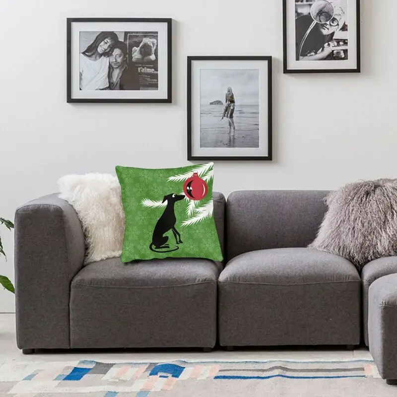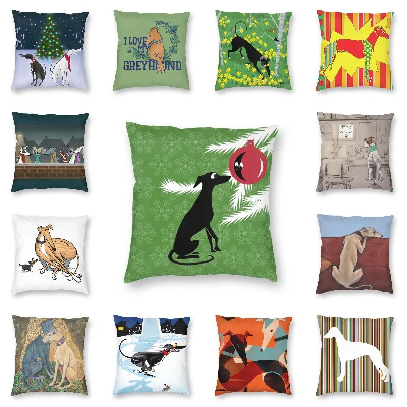 Рождественская наволочка для подушки Whippet, домашний декор, квадратная наволочка для диванной подушки с изображением собаки Greyhound, 40x40 см, подушки для дивана