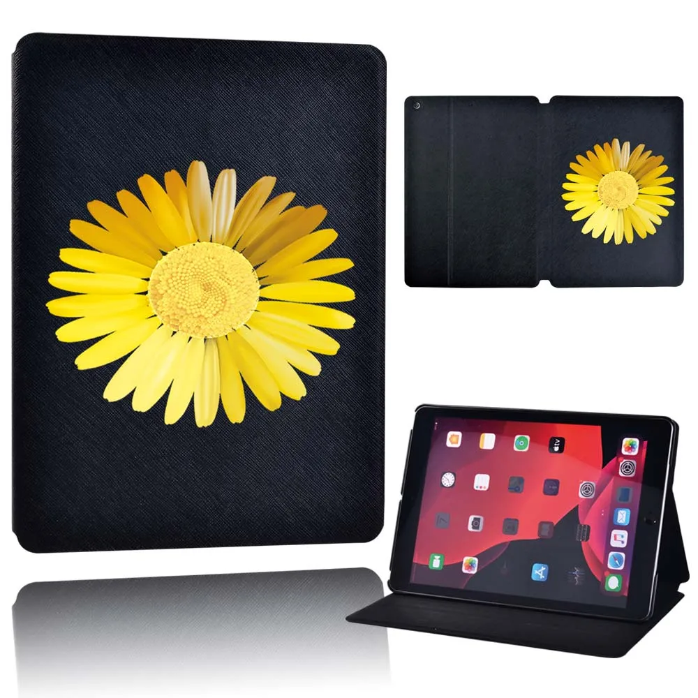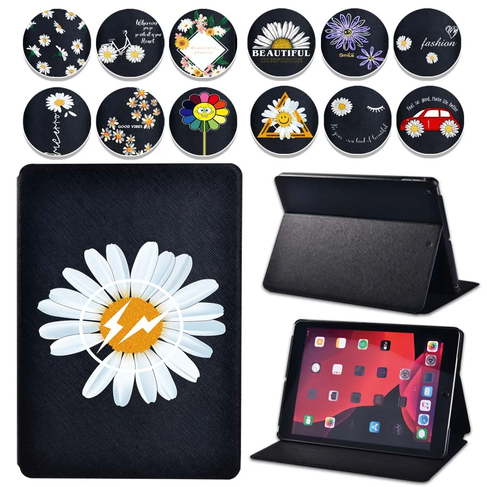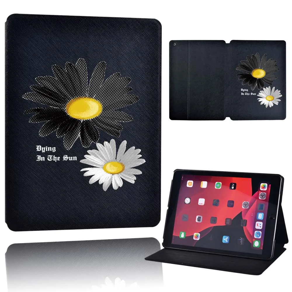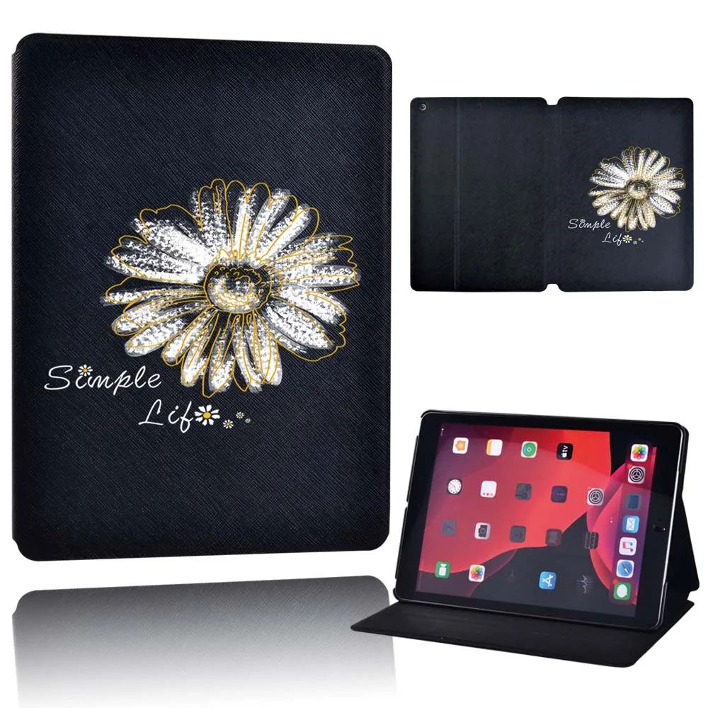 Чехол для планшета Apple iPad 9 10,2 дюйма 2021 (9-го поколения)-складной черный кожаный защитный чехол-подставка для планшета с цветами + ручка