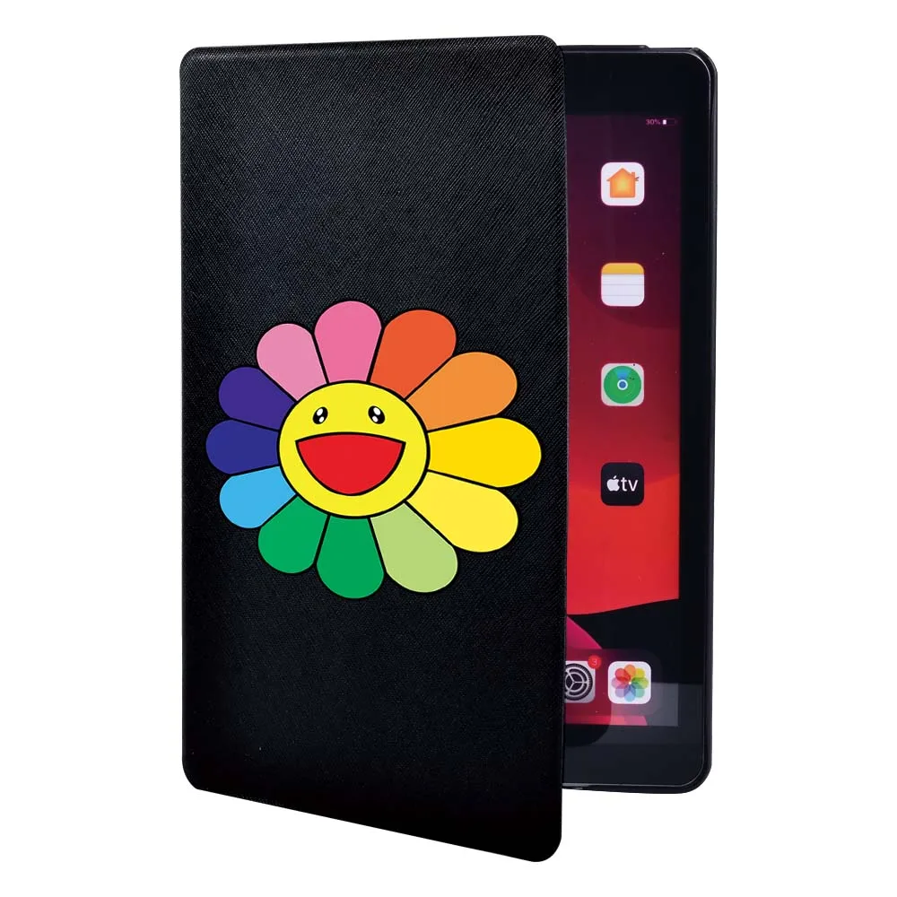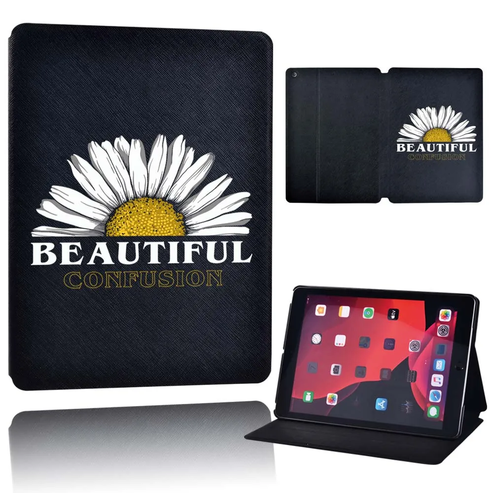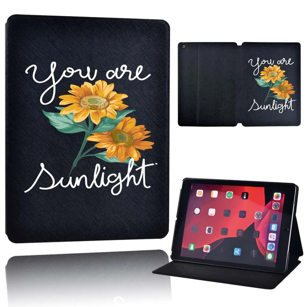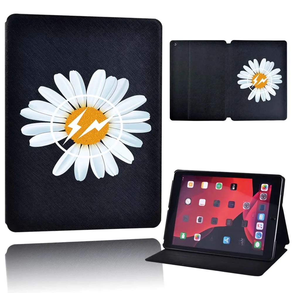 Чехол для планшета Apple iPad 9 10,2 дюйма 2021 (9-го поколения)-складной черный кожаный защитный чехол-подставка для планшета с цветами + ручка
