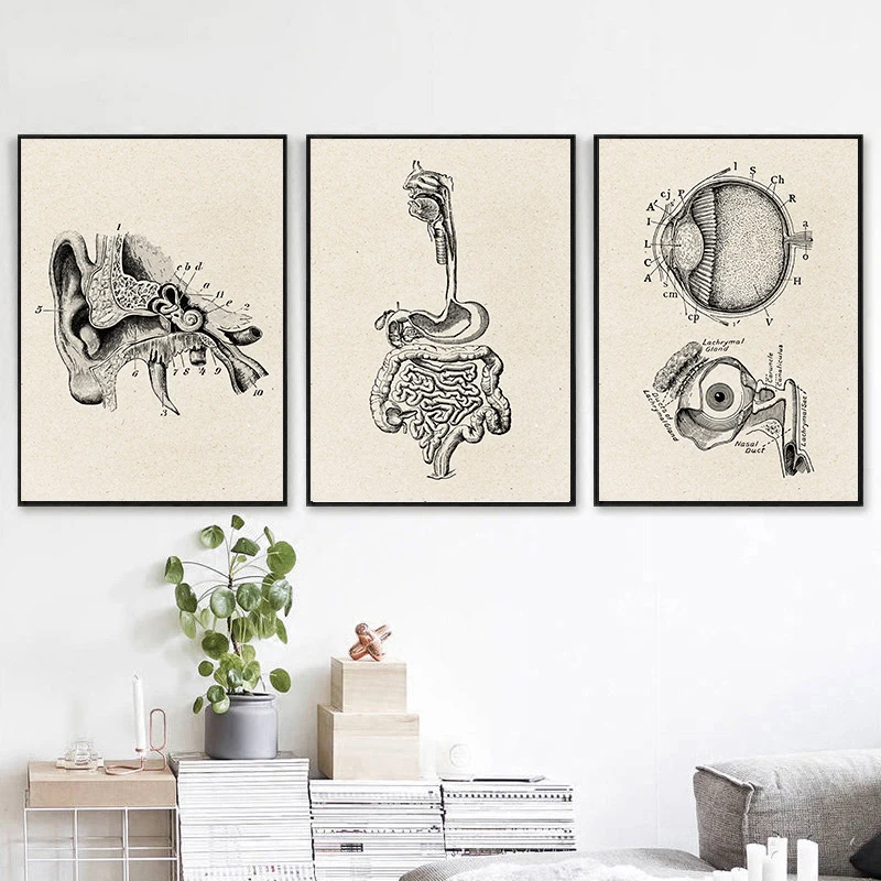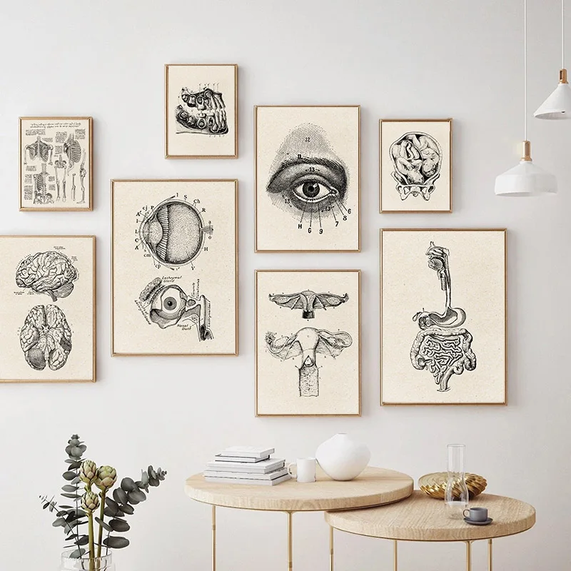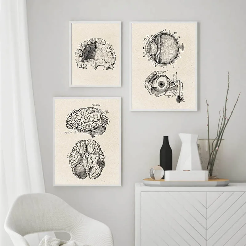 Скандинавская Анатомия человека, художественная живопись, винтажный медицинский холст, постер, скелет мозга глаз, настенная печать, декоративная картина для обучения
