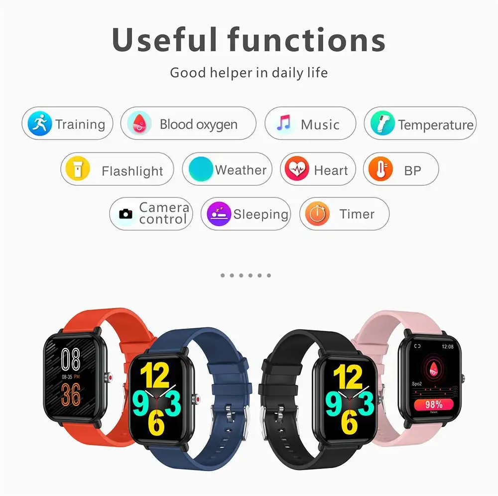 Смарт-часы CHYCET 1,7 дюйма для мужчин и женщин с датчиком температуры тела и пульсометром, Смарт-часы с сенсорным экраном для фитнеса, спортивные наручные часы PK P8