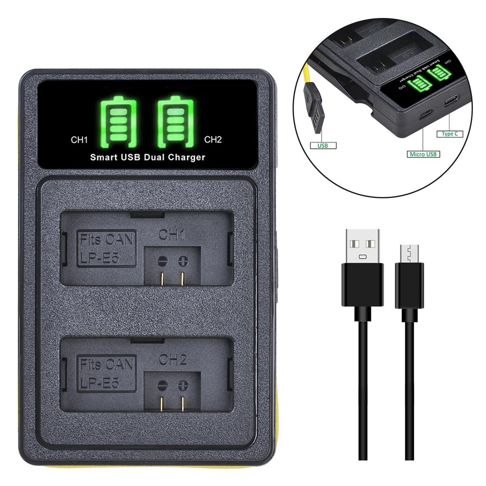 Двойное зарядное устройство для Canon EOS Rebel XS, Rebel T1i, Rebel XSi, 1000D, 500D, 450D, Kiss X3, X2, F