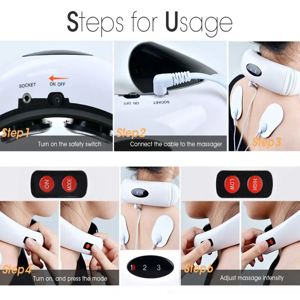Электрический массажер для шеи, 6 режимов, импульсный контроль спины, Дальний инфракрасный нагрев, облегчение боли, расслабляющий инструмент для тела, машина для ухода за здоровьем